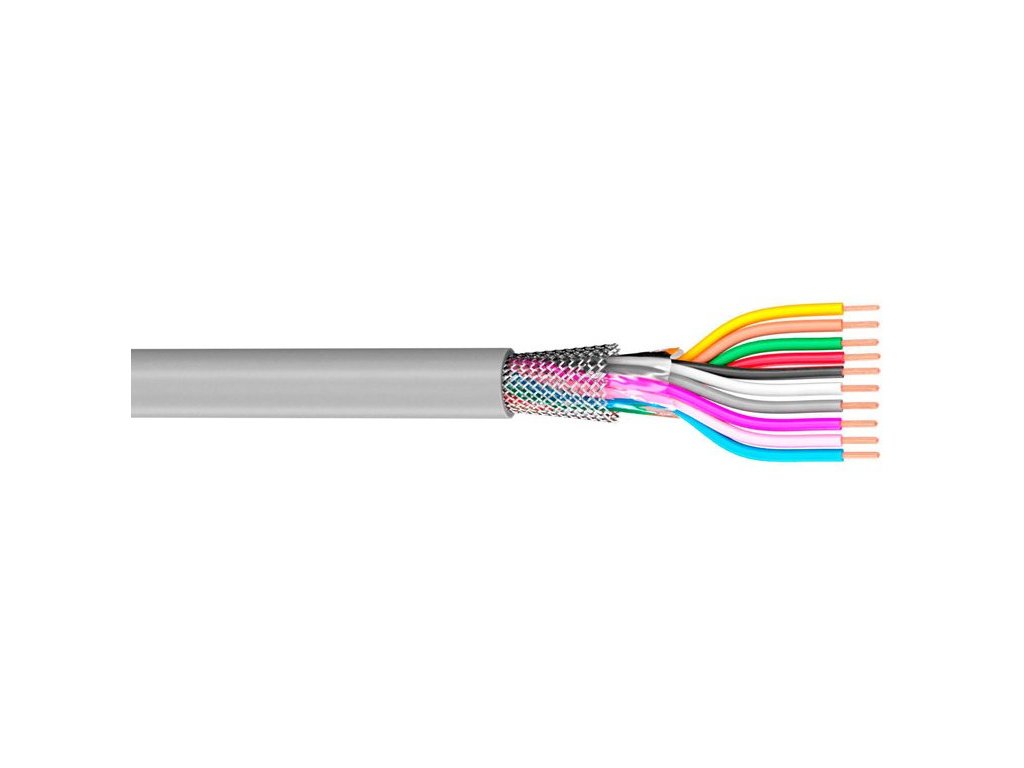 Elastyczny, ale wytrzymały kabel sterowniczy 18 x 0,75 mm LIY-CY z miedzi OFC. Kabel służy jako przewód sygnałowy w zakresie miliamperów dla urządzeń sterujących, takich jak RS232 lub RS422. Całkowita średnica kabla 12,5 mm, ekranowanie 90%, kolor szary, klasa CRP Eca. Specjalne PVC jest niepalne i samogasnące zgodnie z VDE 0472 i częścią 804 oraz przeszło test FRNC typu B (zgodnie z DIN EN 60332-1-1 / IEC 60332-1).