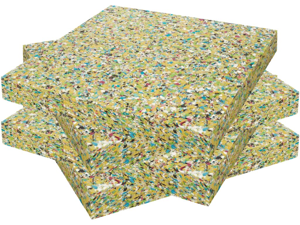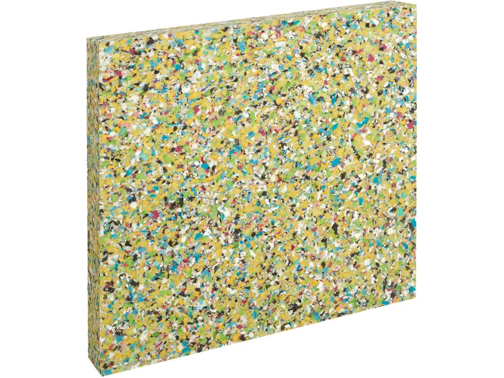 PYRAMID Molded Foam HD70mm - Yellow Są to kawałki poliuretanu prasowane ze sobą za pomocą prasy mechanicznej. Oznaczenie HD (high density) oznacza wysoką masę objętościową produktu, która wynosi 90-110kg/m3. Duża gęstość produktu zapewnia absolutnie najlepszą izolację akustyczną z całej naszej oferty. Pianka prasowana ma zastosowanie przede wszystkim w budownictwie. Umieszczając ją pod podłogami, między płytami gipsowo-kartonowymi lub innymi ściankami działowymi, zapewnisz bardzo skuteczną izolację akustyczną obu pomieszczeń. Izolację łatwo przeciąć nawet nożem kuchennym, materiał się nie kruszy ani nie odpada. Dostępne są również w wersji 30mm - PYRAMID Molded Foam HD30mm. Produkt wytwarzany jest ekologicznie z recyklatów pianek, dlatego jego zabarwienie jest zmienne.