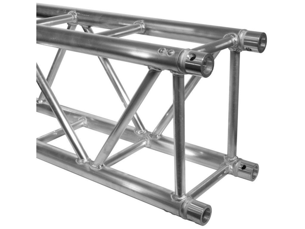 Seria DT 4030/3 to najmniejsza wersja z naszej serii „konstrukcji kratowych”. Wysoka nośność połączona z bardzo niską wagą to cechy tej prostokątnej wersji serii 29x40cm ze stożkowym urządzeniem łączącym. Zaletą systemu szybkozłączy jest to, że umożliwia szybki montaż i demontaż. Cztery rury są wykonane z 50 mm rury aluminiowej o grubości ścianki 3 mm i zapewniają temu systemowi doskonały stosunek wytrzymałości do wagi. Wsporniki mają średnicę 25 mm i grubość ścianki 3 mm. Częścią systemu są również stożki, stalowe sworznie i klipsy zabezpieczające.