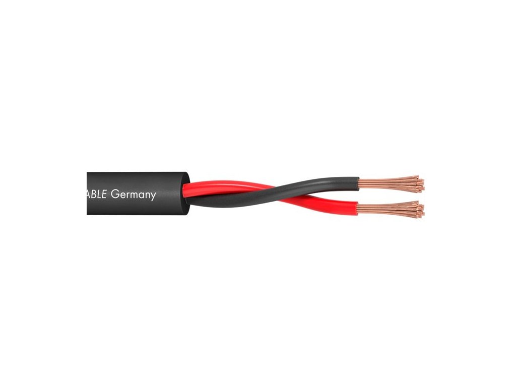 Bardzo wysokiej jakości i elastyczny kabel głośnikowy 2 x 2,5 mm z cienkimi przewodami z miedzi beztlenowej, zapewniający lepszy dźwięk, a dzięki mocnej powłoce także dłuższą żywotność. Odpowiedni do wszystkich typów systemów dźwiękowych. Średnica elastycznego PVC 7,8 mm, wysokiej jakości miedź OFC, powłoka odporna na promieniowanie UV, waga 1 m 106 g, zakres temperatur pracy od -30° C do +70° C, klasa Fca, grubość izolacji płaszcza 3,05 mm, kolor czarny.