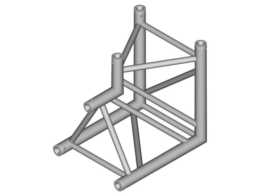 Dwukierunkowy element narożny z wewnętrznym wierzchołkiem i poprzecznymi wzmocnieniami, do konstrukcji scenicznej. Ma kąt 90°, wykonany ze stopu EN-AW 6060 T66. Ma możliwość wykończenia powierzchni farbą proszkową, we wszystkich odcieniach RAL. Wymiary: 500 x 500 x 220 mm. Waga: 4,5 kg.