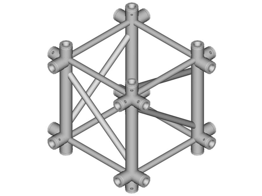 Sześciodrożny element aluminiowy w kształcie x + góra i dół.
