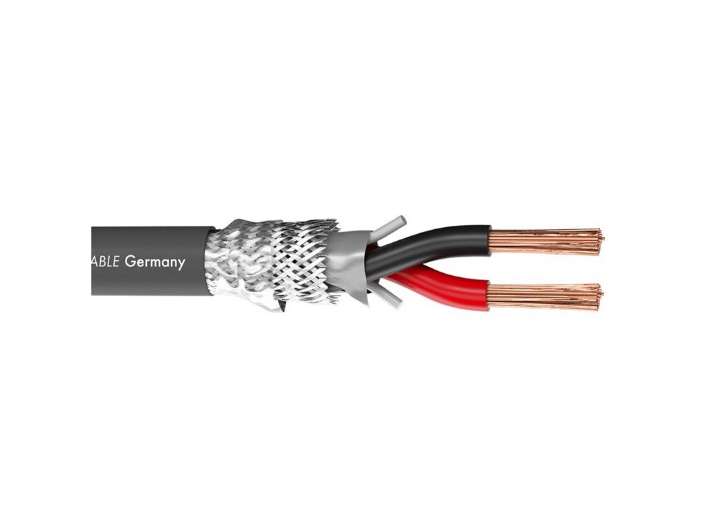 Kabel głośnikowy instalacyjny 2 x 4 mm (AWG11) z ekranowaniem. 2 przewody linkowe 2 x 4 mm oznaczone czarną i czerwoną powłoką. Ekranowanie jest utworzone z krzyżowego oplotu miedzianego, użyta wysokiej czystości miedź OFC, niepalny (FRNC E30/ LSZH) i bezhalogenowa powłoka o średnicy 10,1 mm, waga 1 m 202 g, pojemność na 1 m 125 pF, grubość izolacji 4,2 mm, zakres temperatur stosowania -30° C + 70° C, kolor ciemnoszary. Kabel nadaje się do stałych instalacji audio i instalacji 100 V.