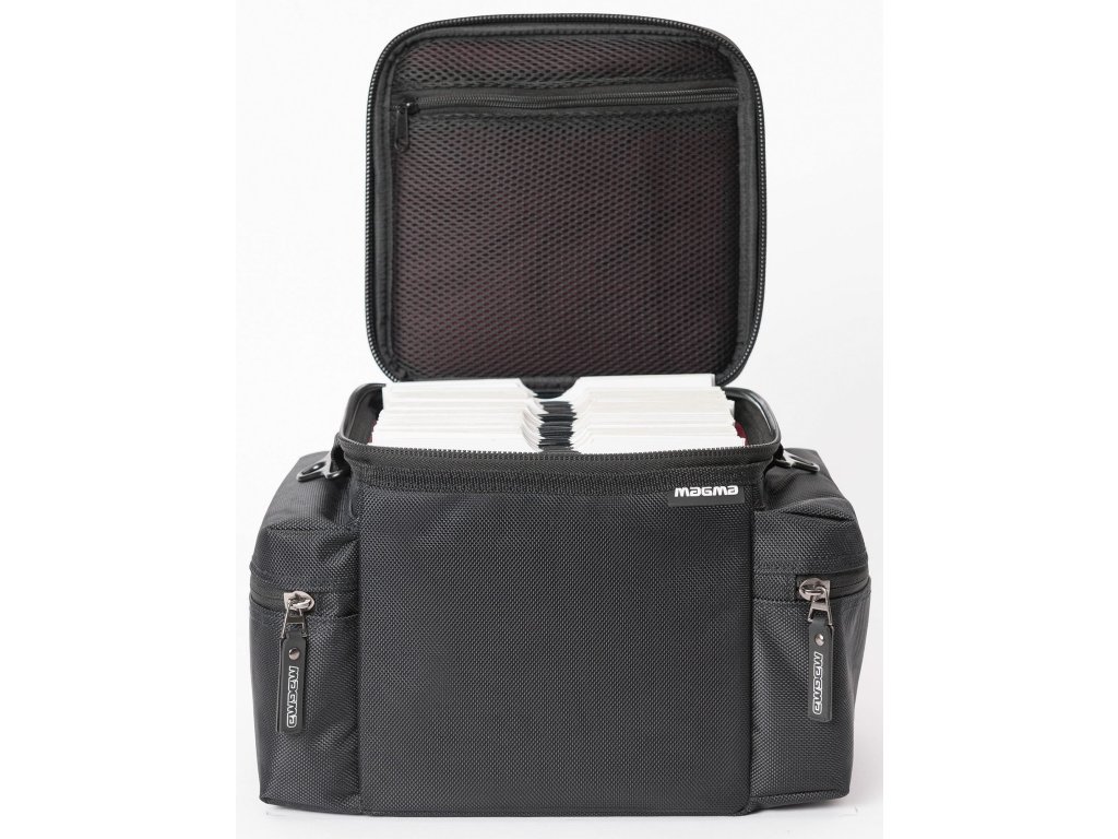 Nowa torba MAGMA 45 RECORD-BAG 100 to najnowszy dodatek do serii toreb MAGMA 45 i idealnie pomieści do 100 płyt 7". W pełni wyściełany korpus główny charakteryzuje się wzmocnionym, półtwardym korpusem z PVC, który zapewnia doskonałą ochronę i stabilne mocowanie nawet w wybranej pozycji płyt. W dwóch bocznych kieszeniach na zamek błyskawiczny można przechowywać dodatkowe akcesoria, takie jak słuchawki lub etui na igłę.