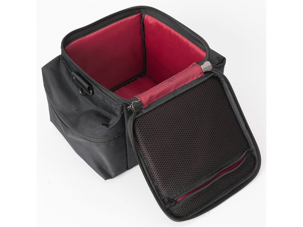 - W dwóch bocznych kieszeniach zmieszczą się słuchawki, etui na igłę i 45 adapterów