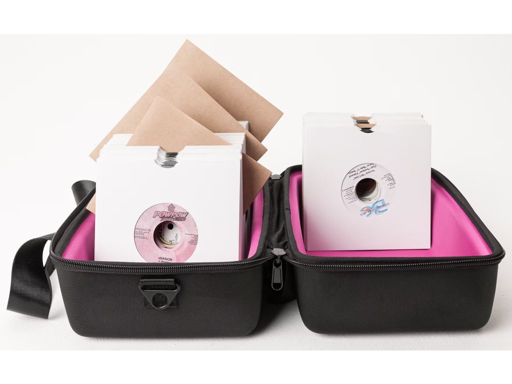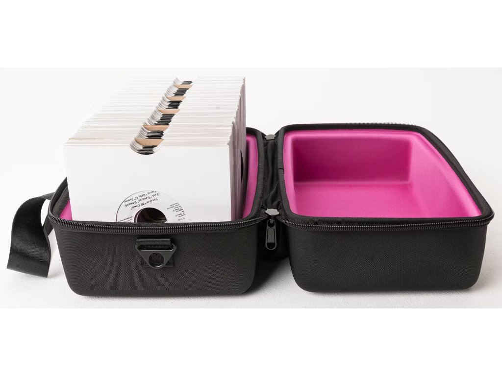 Twarda torba MAGMA 45 SANDWICH, zaprojektowana dla profesjonalnych DJ-ów winylowych, oferuje sprytne i praktyczne rozwiązanie do transportu Twoich płyt 7". Ta lekka walizka z w pełni uformowaną, amortyzującą wstrząsy skorupą EVA zapewnia niezawodną ochronę i doskonałe przechowywanie do 150 sztuk płyt winylowych 7".