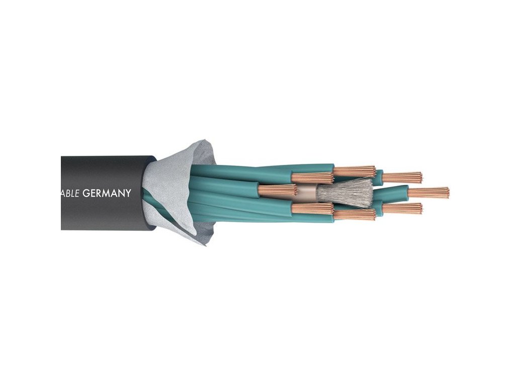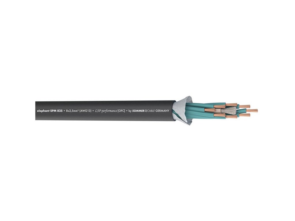 Kabel głośnikowy 8 x 2,5 mm, płaszcz PVC o średnicy 15,3 mm. Bezstratna transmisja dzięki precyzyjnemu splotowi poszczególnych przewodów, każdy przewód ma swoje oznaczenie numerem, miedź OFC, grubość izolacji 3,25 mm, zakres temperatur użytkowania -25° C do + 70° C, odporność na promieniowanie UV, waga 1 m 354 g, kolor czarny. Klasa CPR: Fca.