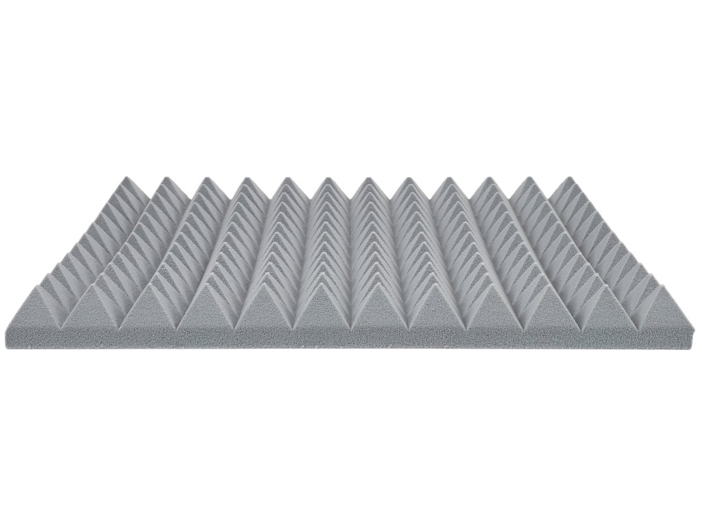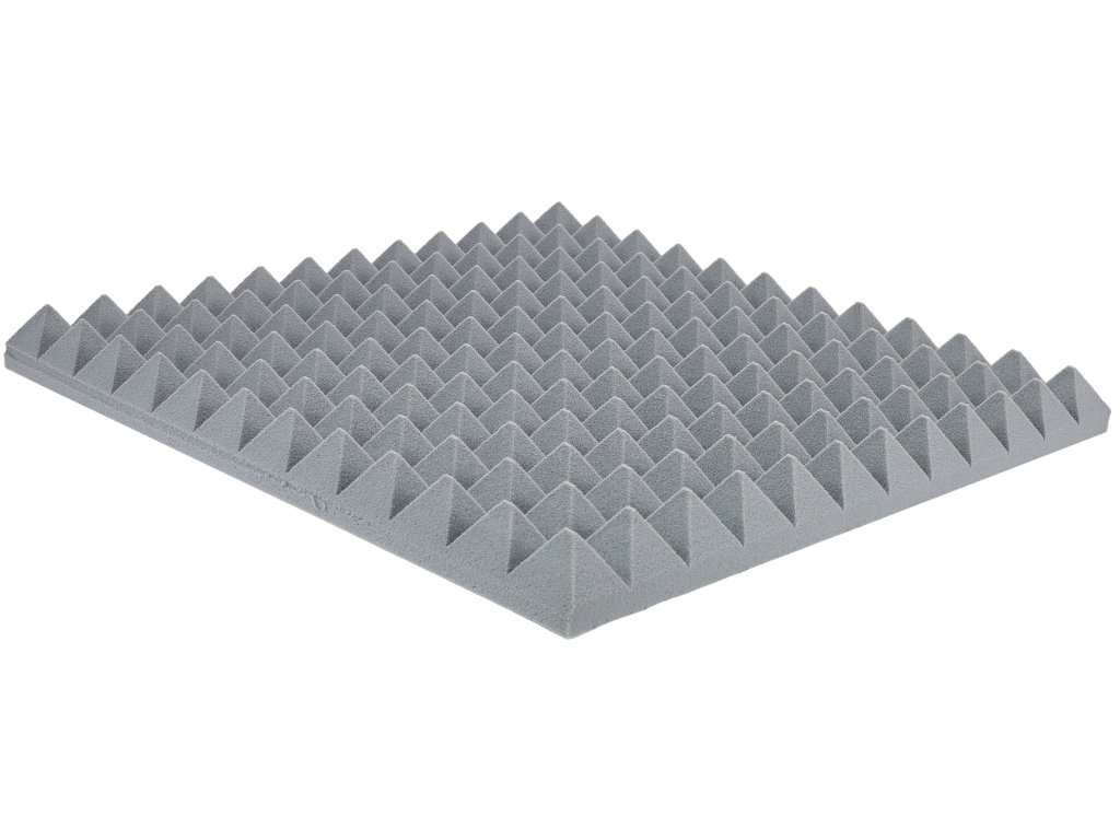 PYRAMID Pyramid 50mm Grey/White to akustyczne panele piankowe o charakterystycznym piramidalnym wzorze, które skutecznie poprawiają akustykę Twojego pomieszczenia. Każdy panel ma wymiary 50 x 50 cm i grubość 5 cm, co czyni go jednym z najpopularniejszych rozwiązań do adaptacji akustycznych.