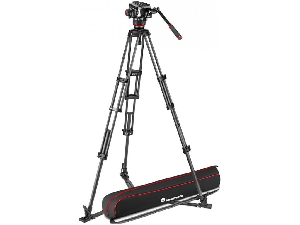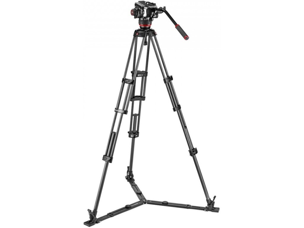 Ten innowacyjny system wideo obejmuje głowicę statywową z płynem Manfrotto 504X Fluid Video Head oraz statyw MVTTWINGC z podwójnymi nogami z włókna węglowego z rozpórką umieszczoną na ziemi.