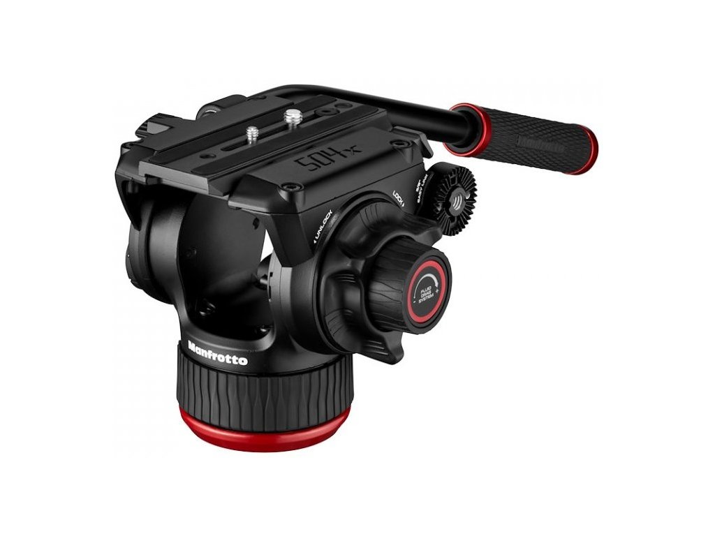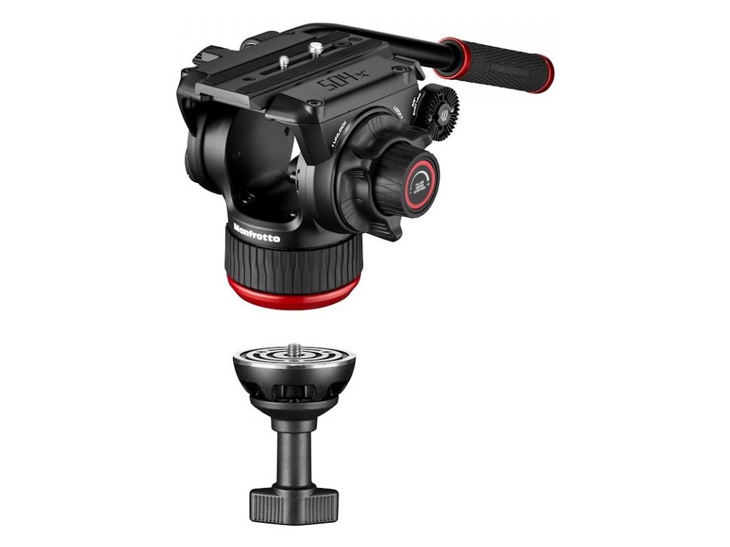 Głowica wideo z płynem Manfrotto 504X z płaską podstawą jest wyposażona w nową technologię płynów marki Manfrotto, która umożliwia płynniejsze ruchy i niezrównaną stabilność podczas obracania i przechylania. Przedstawia czterostopniowy system przeciwwagi obsługujący ustawienie przeciwwagi do 6,5 kg przy obciążeniu 55 mm C.O.G. Głowica posiada całkowicie nową aluminiową konstrukcję i wytrzymuje obciążenie do 12 kg. Jest to kompaktowa i lekka głowica statywowa z płaską podstawą (średnica podstawy 75 mm), która umożliwia różnorodność pracy. Znajdują się tutaj również dwa złącza 3/8” Easy Link wyposażone w funkcję zapobiegającą obracaniu i umożliwiające montaż zewnętrznych akcesoriów. Złącza są wyposażone w wieczko. Mechanizm przesuwnej płytki i bocznego zamka umożliwiają bezpieczne, szybkie i łatwe podłączenie urządzenia.