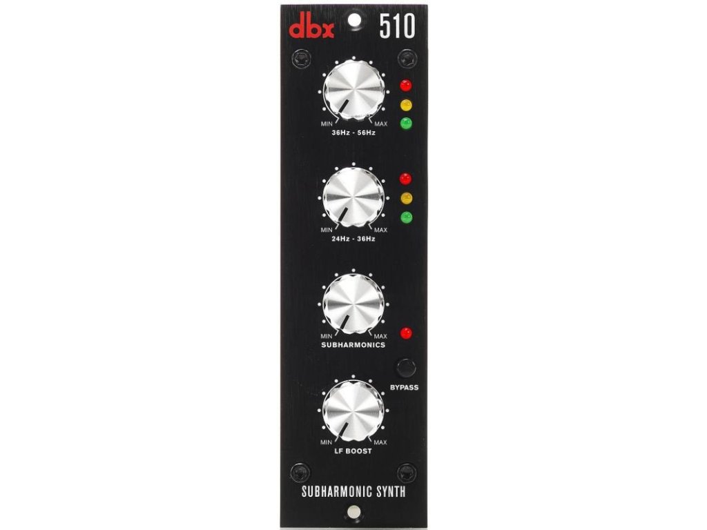 Syntezator subharmonicznych składowych, format API500. Moduł do systemu rack Series 500, opatentowana synteza subharmoniczna dbx, optymalizacja i ulepszenie dolnego pasma częstotliwości, dwa oddzielne pasma, obwód LF BOOST.