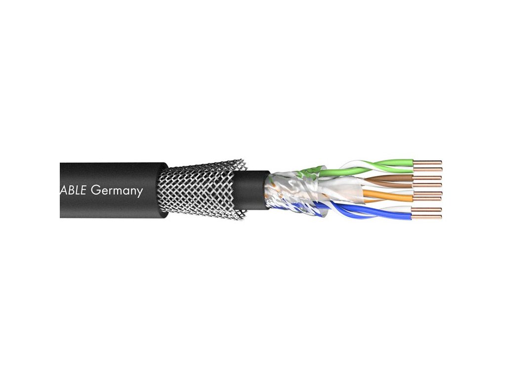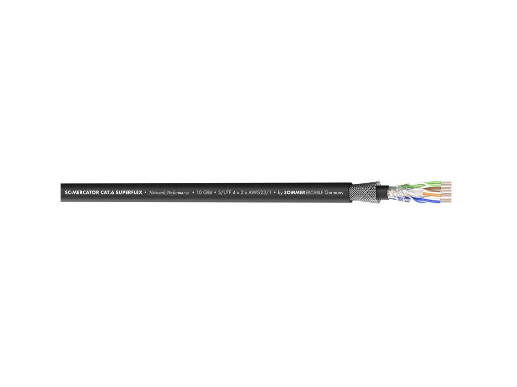 SC-Mercator CAT.6 SUPERFLEX to idealny kabel do mobilnych, zewnętrznych transmisji cyfrowego dźwięku i sygnałów sieciowych, na przykład w wozach transmisyjnych i na koncertach na żywo. Ze względu na wysoki przekrój AWG 23/1 sygnał może być przesyłany nawet na odległość 100 metrów bez żadnych problemów. Dwie warstwy izolacyjne zapewniają doskonałą elastyczność w każdych warunkach pogodowych. Powłoka zewnętrzna wykonana jest z wyjątkowo miękkiej mieszanki poliuretanowej, a powłoka wewnętrzna z wysoce elastycznego S-PVC. Ekran w postaci oplotu wykonany jest z cynowanej miedzi i znajduje się między warstwami płaszcza.