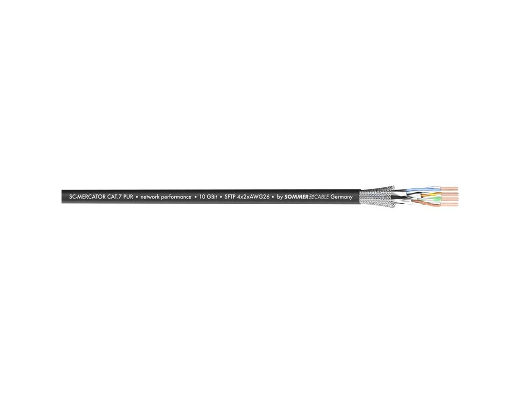 MERCATOR CAT.7 PUR to wysokiej jakości kabel cyfrowy. Zastosowano wysokiej jakości miedź beztlenową OFC. Za pomocą tego kabla możesz połączyć swój cyfrowy pulpit z stageboxem. Nadaje się do zastosowań mobilnych i studyjnych lub instalacji stałych. Wytrzymała powłoka PUR jest elastyczna, a dzięki wysokiej jakości oplotowi również bardzo odporna na uszkodzenia. Kabel dobrze się zwija nawet w niskich temperaturach. Przekrój linek przewodzących SFTP 4 x 2 x 0,14 mm²/600 MHz (AWG26), 100% ekranowany oplot z miedzi cynowanej, średnica izolacji PUR FRNC/LSZH 6,5 mm. Pojemność 1 m 45 pF, impedancja 100 Ohm, maks. opóźnienie 10 ns @ 100 MHz, zakres temperatur użytkowania -20° C do + 60° C, waga 1 m 40 g, kolor czarny.
