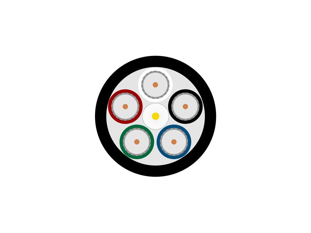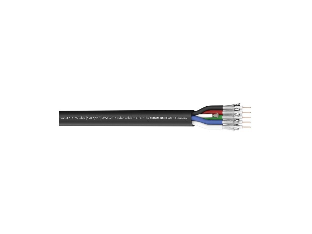 Wielożyłowy kabel wideo o impedancji 75 Ohm TRANSIT 5, 5 x kabel wideo o przekroju żyły 0,60 mm (AWG23). Waga 1 m 215 g. Średnica PVC 13,8 mm. Kabel nadaje się do zastosowań mobilnych i instalacji stacjonarnych. Kolor czarny.