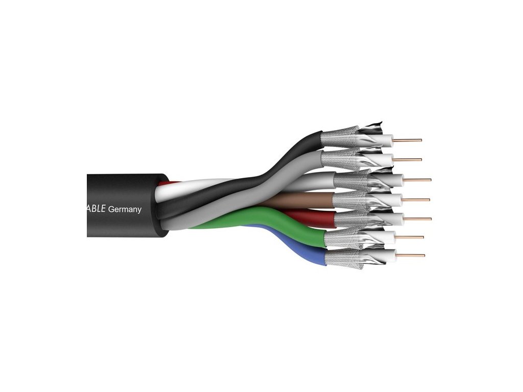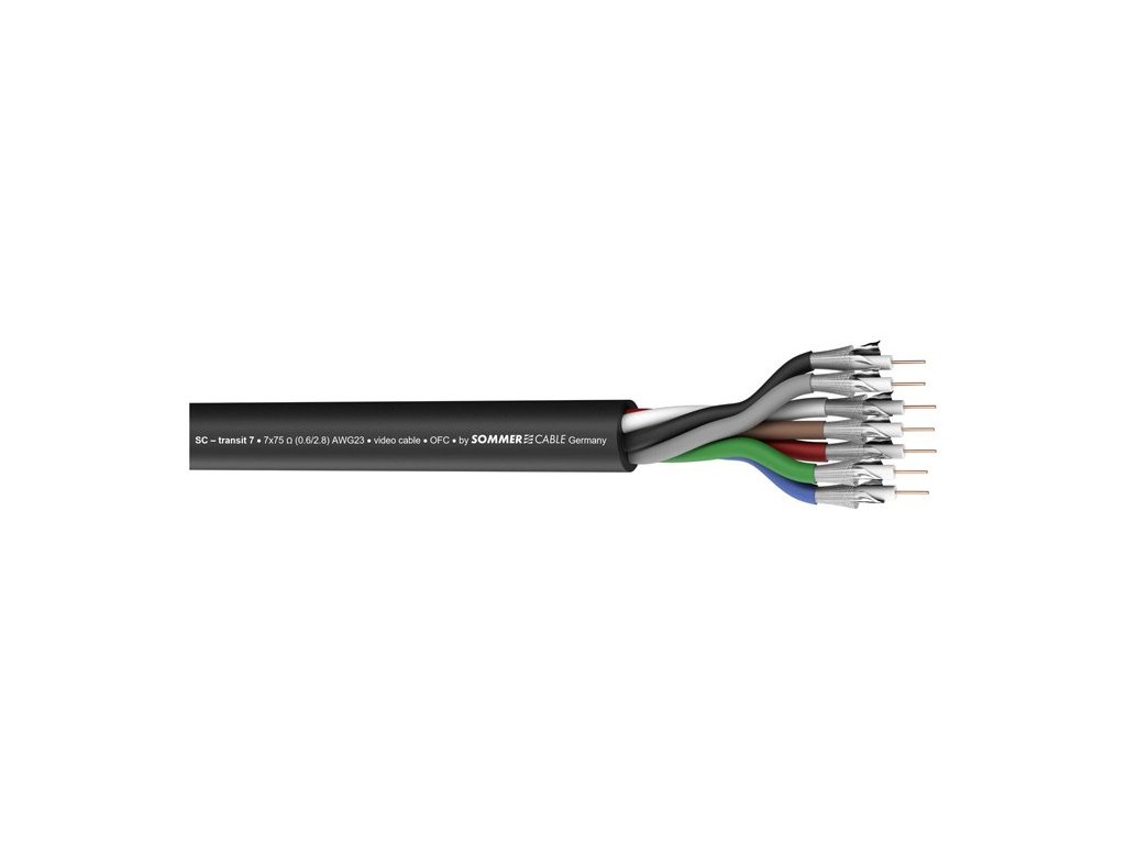 Kabel wideo wieloparowy 75 Ohm TRANSIT 7, 7 x kabel wideo 2YS (ST) CY0,6 / 2,8 o przekroju żyły przewodzącej 0,60 mm (AWG23). Waga 1 m 270 g, ekranowanie 100 %, średnica płaszcza 15 mm. Kabel nadaje się do zastosowań mobilnych i instalacji stacjonarnych. Kolor czarny.