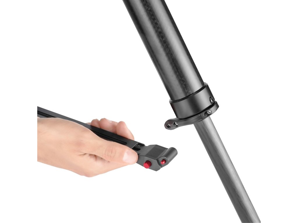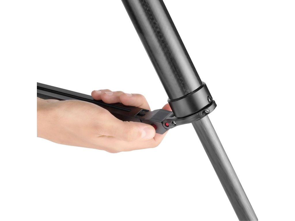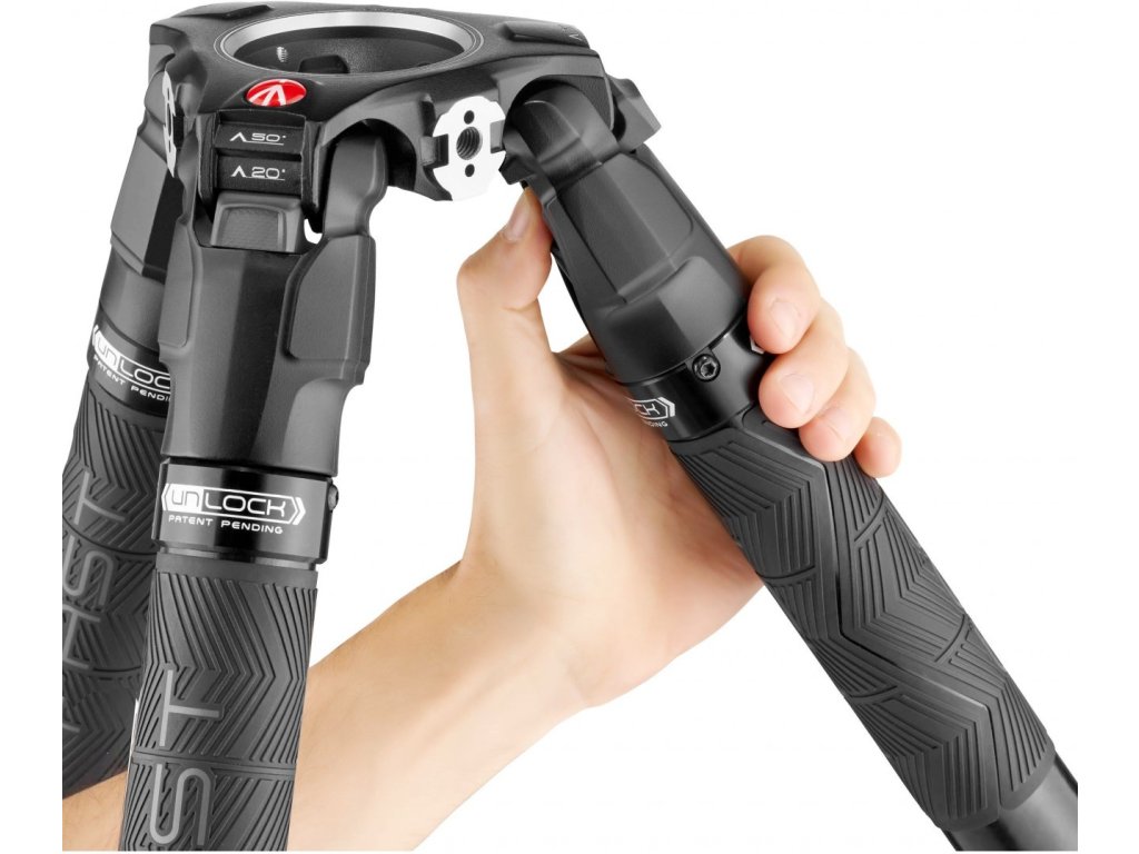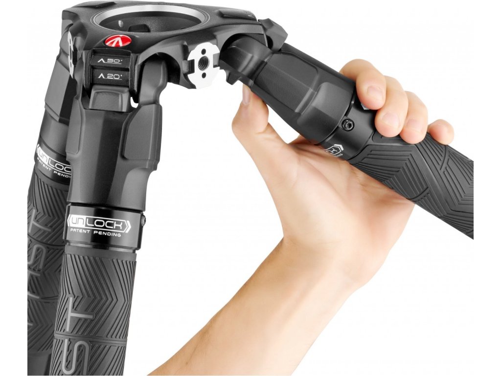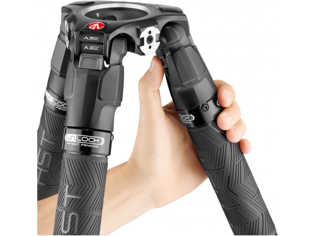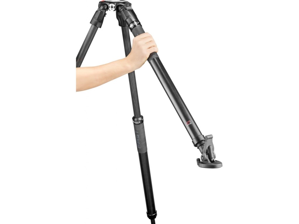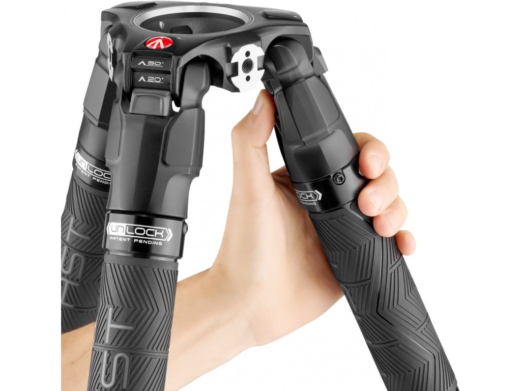 Manfrotto 635 Fast Single Tripod Carbon Fiber ze zsynchronizowanymi mechanizmami blokującymi między górnym i dolnym zamkiem jest wyposażony w zamek Extra M-Lock twist dla bezpiecznego zablokowania jednym ruchem. Statyw 635 FST jest wyposażony w półkulę o średnicy 75 mm i jest kompatybilny z adapterem półkuli o średnicy 60 mm (sprzedawany oddzielnie). Ponadto zawiera przyłącze ramion ciernych Easy Link kompatybilne z Manfrotto anti rotacyjnymi i Arri anti-twist czopami. Dzięki temu można łatwo podłączyć zewnętrzny monitor lub jakiekolwiek inne akcesoria, bez obaw o niepożądane obracanie podczas użytkowania.