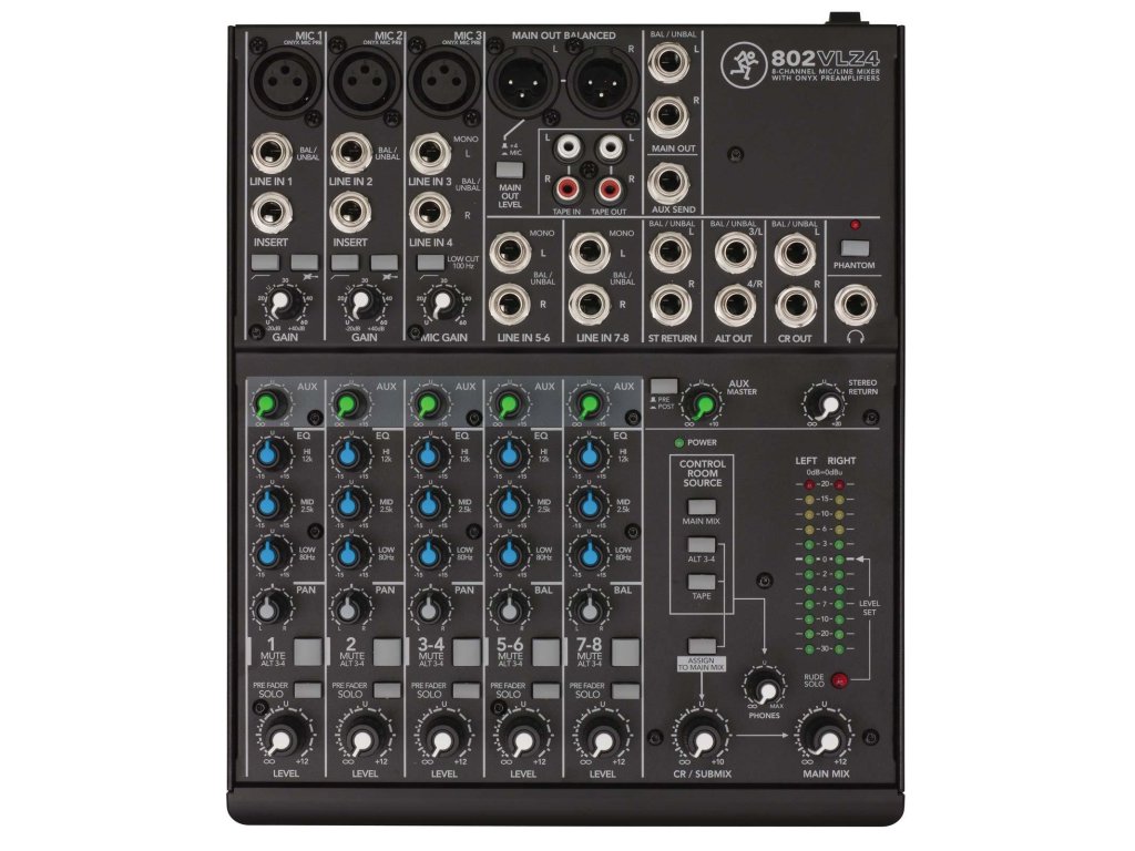 Konkretnie 802-VLZ4 to kompaktowy 8-kanałowy mikser, który oferuje 8 wejść liniowych i 3 wejścia mikrofonowe, gdzie w mikrofonowych zastosowano wysokiej jakości przedwzmacniacze Onyx, które możesz znać z najwyższych serii Mackie. Oferują one zakres wzmocnienia do 60 dB, dzięki czemu w zakresie dynamicznym można uzyskać do 128,5 dB. Zapewniają one najwierniejsze wzmocnienie sygnału na wszystkich częstotliwościach i minimalny poziom zniekształceń. Oczywiście oferuje również zasilanie phantomowe przy użyciu mikrofonów pojemnościowych. W 802-VLZ3 można również użyć wejść instrumentalnych, dzięki którym nie będziesz potrzebować żadnych DI boxów.