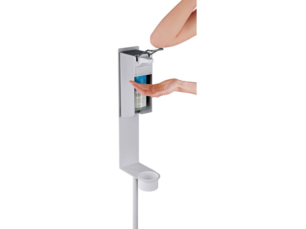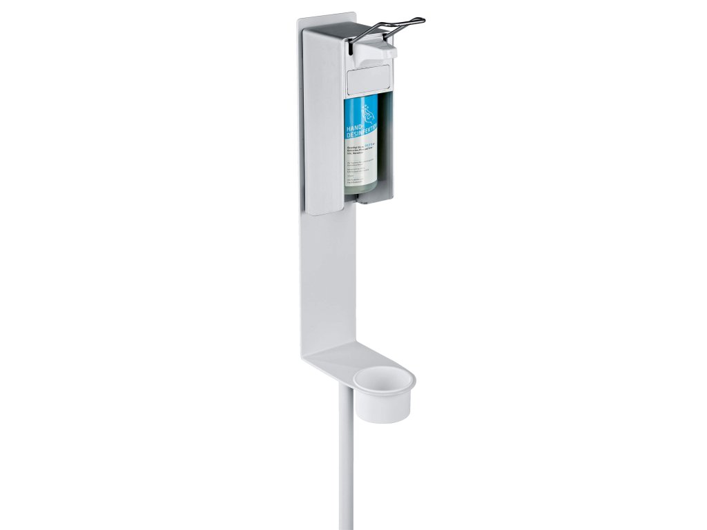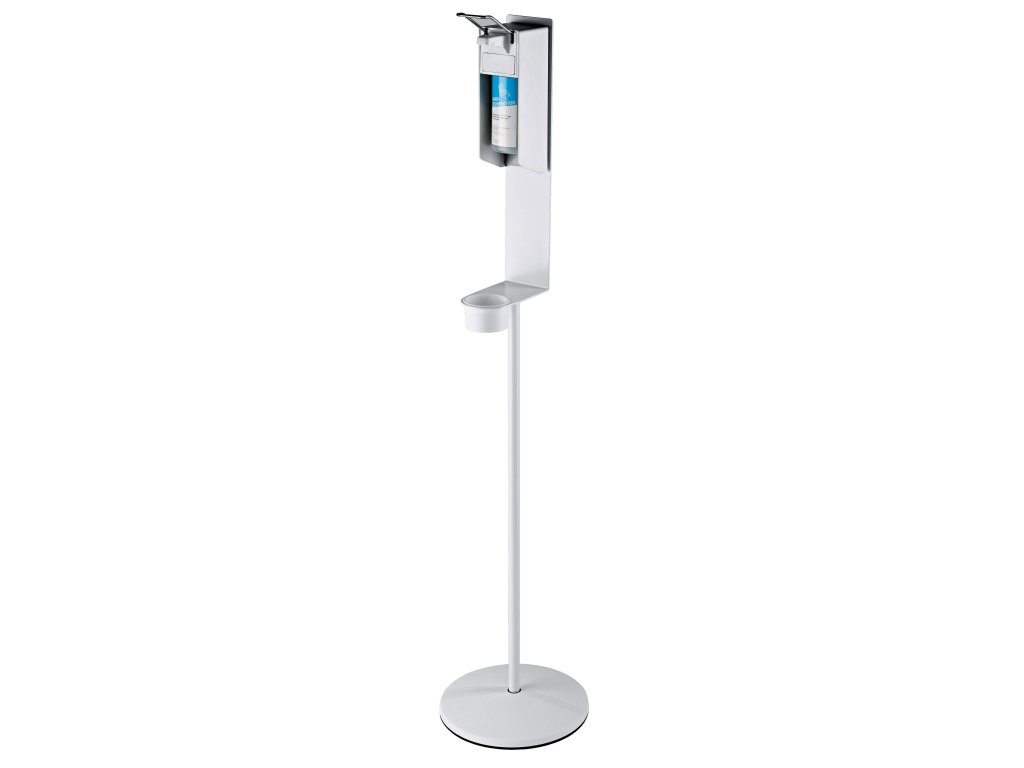 Solidny stojak na płyn dezynfekcyjny od K&M, odpowiedni do użytku wewnątrz i na zewnątrz, wykonany jest z mocnej stali, a jego konserwacja i transport są bardzo proste. Stojak jest przeznaczony do dozowników Euro.