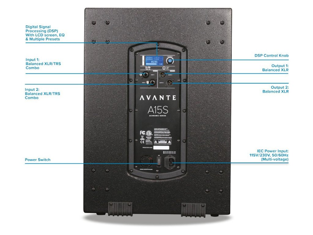 Avante A15S, będący częścią serii Achromic od Avante Audio, to aktywny subwoofer, który oferuje moc, szczegółową czystość dźwięku, wbudowany DSP i elegancki design. Stworzony dla muzyków, zespołów, firm produkujących dźwięk i wypożyczalni. Głośniki serii Achromic są równie odpowiednie do stałej instalacji, jak i do jednorazowej produkcji.