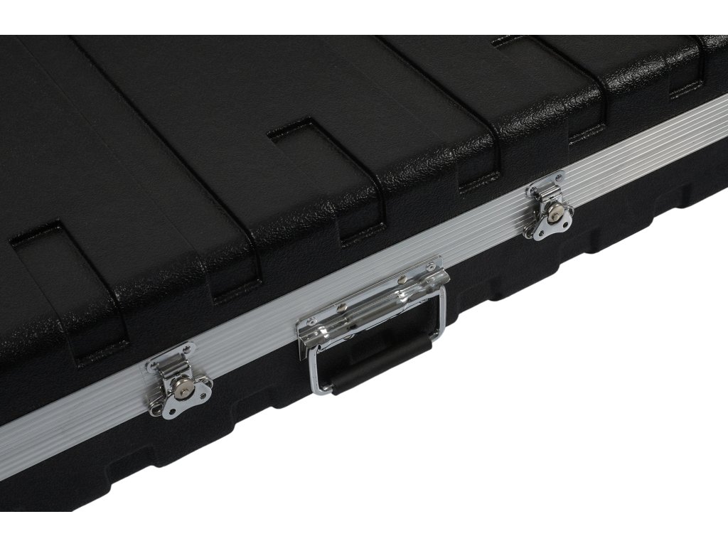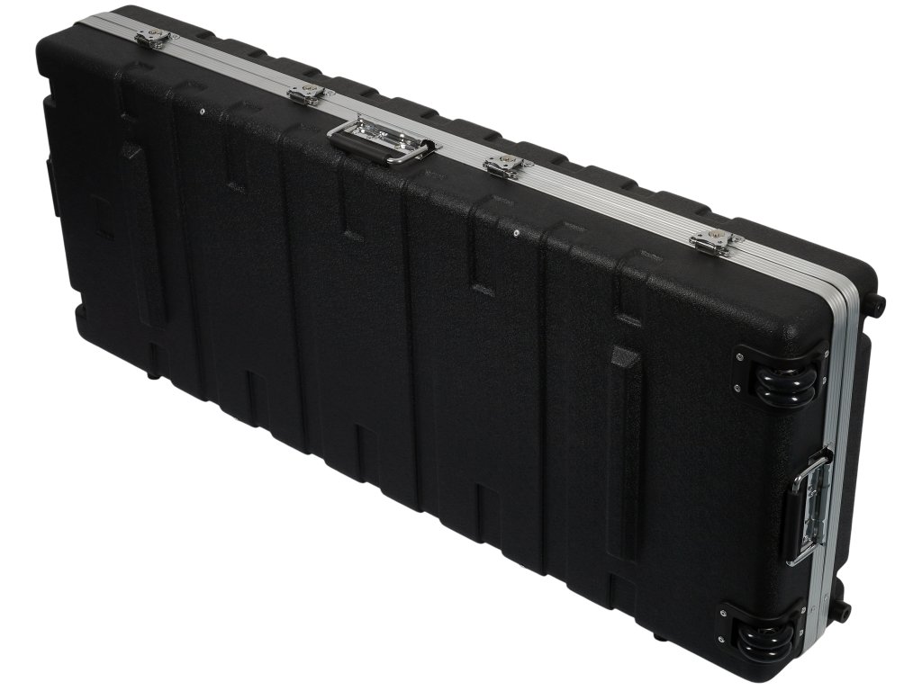 Kufer posiada cztery zamki obrotowe dla łatwego i bezpiecznego zamknięcia. Dla komfortowej obsługi wyposażony jest w trzy masywne uchwyty i dwa kółka, co ułatwia jego przemieszczanie na krótszych i dłuższych dystansach. Idealny wybór dla muzyków szukających niezawodnej i mobilnej ochrony swojego instrumentu.