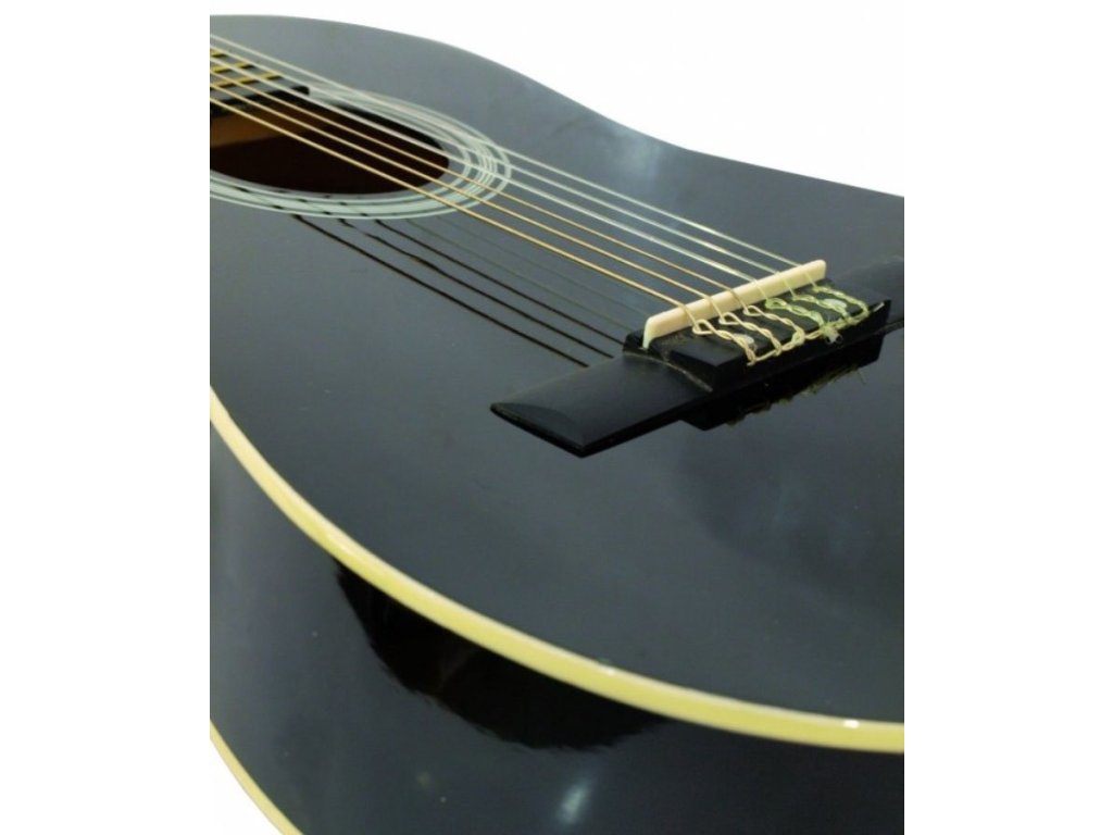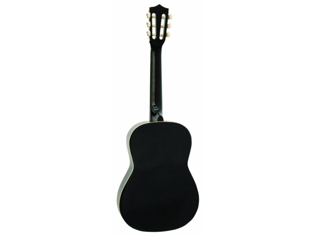 Klasyczna gitara 3/4. Płyta wierzchnia, płyta spodnia i boki akacjowe, gryf klonowy, podstrunnica z bejcowanej sklejki, mostek z bejcowanego klonu. Kolor czarny.