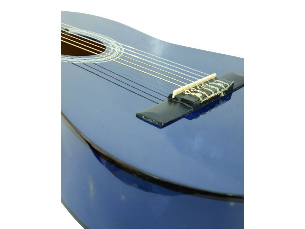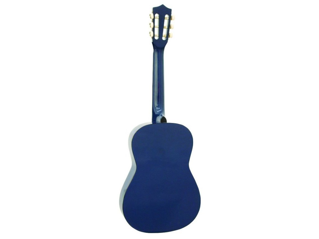Klasyczna gitara 3/4. Płyta wierzchnia, płyta spodnia i boki akacjowe, gryf klonowy, podstrunnica z bejcowanej sklejki, mostek z bejcowanego klonu. Kolor niebieski.
