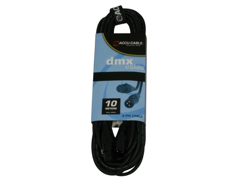 Kabel DMX ze złączem XLR 3-Pin. Przeznaczony do łączenia efektów świetlnych. Długość: 10m.