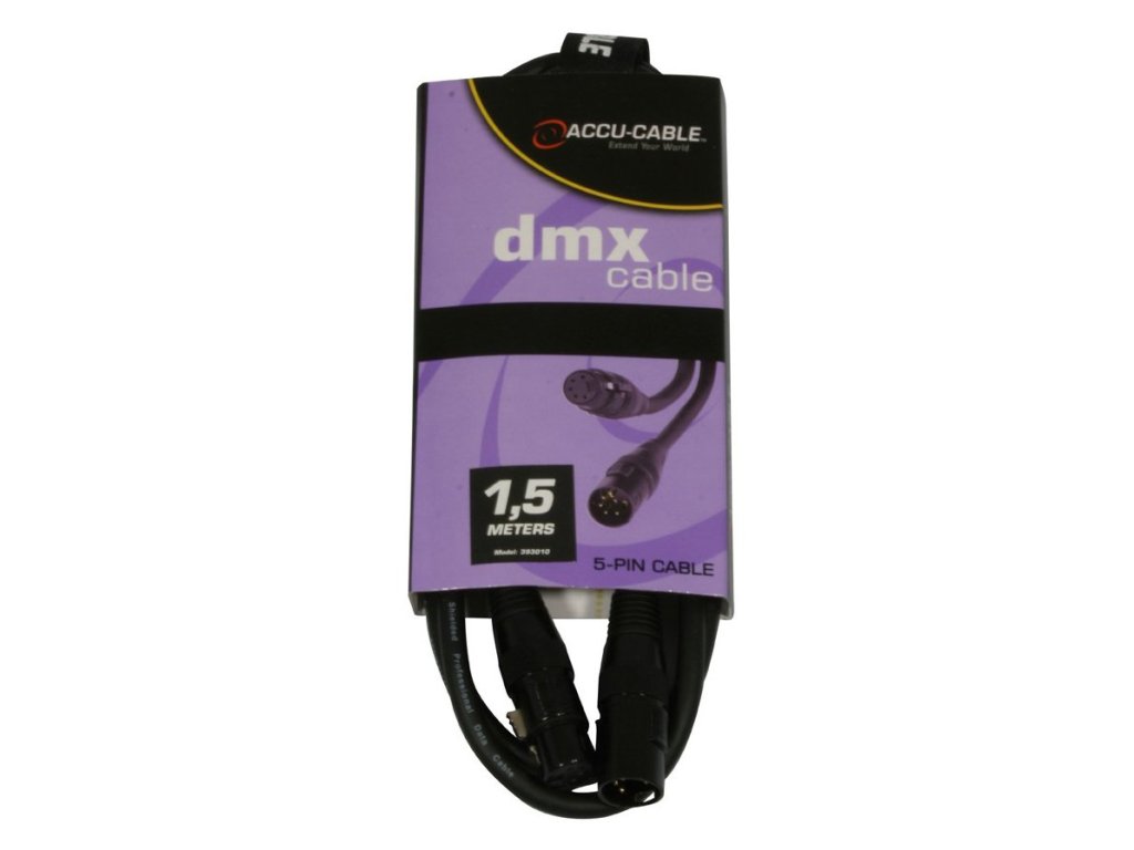 Kabel DMX ze złączem XLR 5-Pin. Przeznaczony do łączenia efektów świetlnych. Długość: 1,5m.
