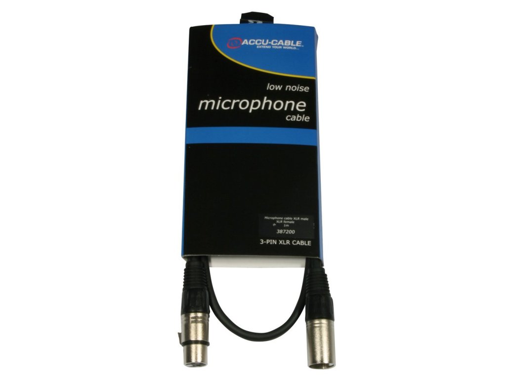 Kabel mikrofonowy. XLR męski/XLR żeński. Długość: 1m.