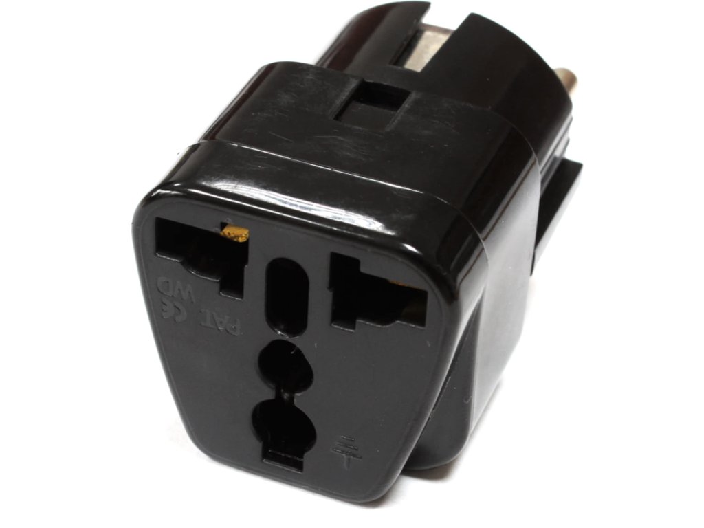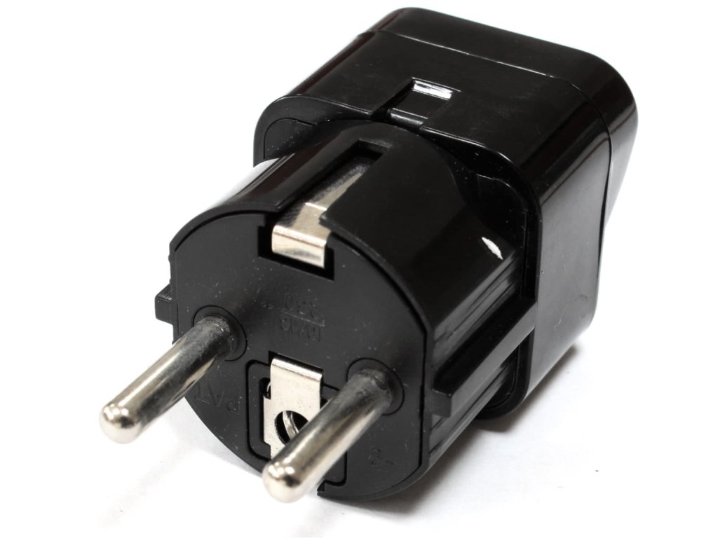 Wysokiej jakości i praktyczny adapter do konwersji międzynarodowych wtyczek zasilających na niemieckie i europejskie wtyczki zasilające.