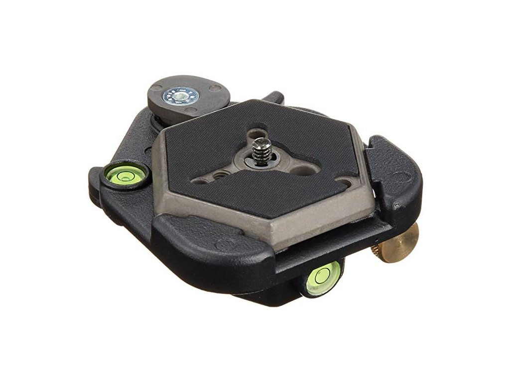 Sześciokątna płytka mocująca dostarczana ze śrubami 1/4" i 3/8" do mocowania kamery, wyposażona w 2 wbudowane poziomice.