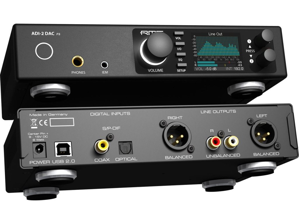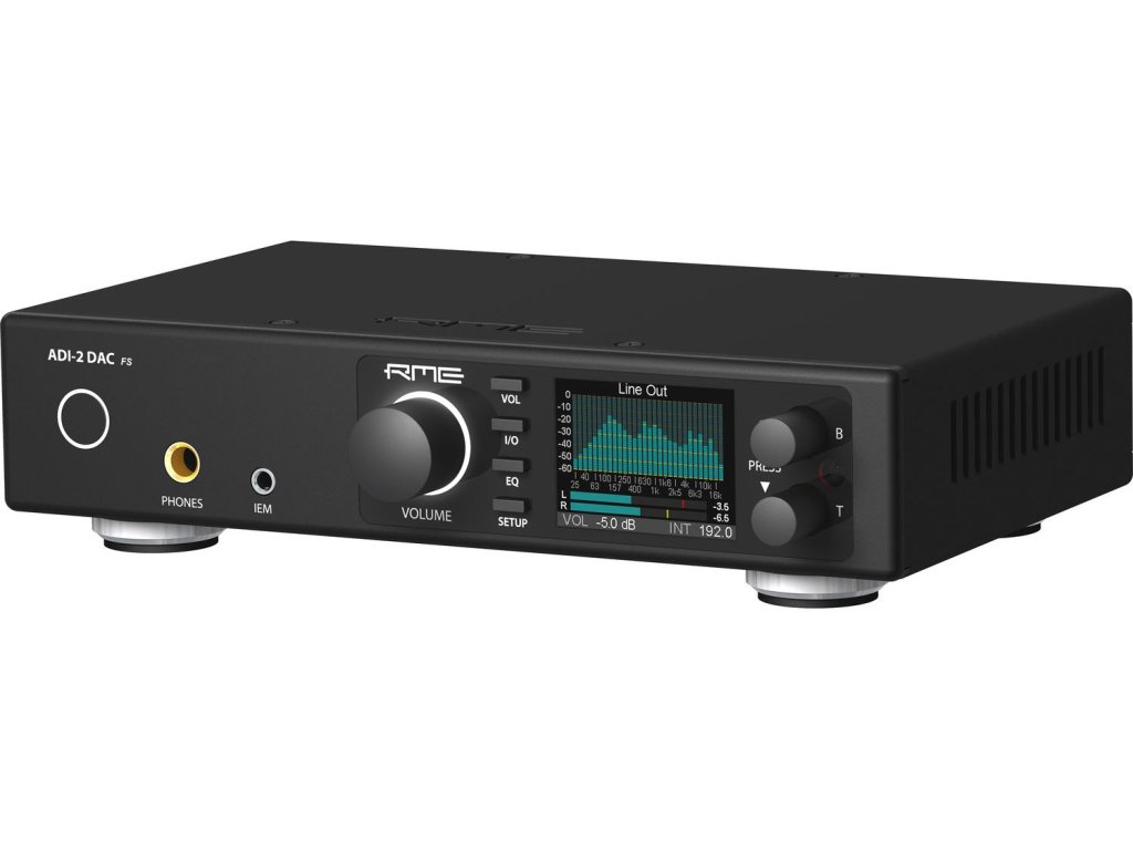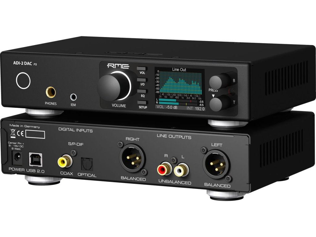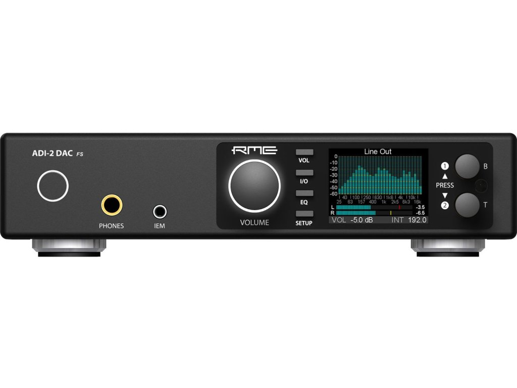 Sercem ADI-2 DAC FS jest topowy układ AK4493 japońskiej firmy AKM w specjalnym wariancie obwodu opracowanym przez inżynierów RME, który umożliwia układowi pracę w najlepszy możliwy sposób. Przy poziomach szumów 123 dBA, zniekształceniach mniejszych niż -120 dB lub THD+N -117 dB. Wyjście dla monitoringu dousznego IEM ma wartości -118 dBu (z rozszerzeniem do rewelacyjnych -120 dBu), co czyni go wyjściem o najniższym poziomie szumów na świecie! Ponadto dostępny jest 4 dB cyfrowy headroom, dzięki czemu nawet szczyty sygnału (peak) nie powodują słyszalnych zniekształceń. Urządzenie oferuje teraz również rezerwę w ustawieniu głośności. +2,5 dB oferuje wciąż niezniekształcony analogowy sygnał wyjściowy. Wszystkie ustawienia, właściwości, zachowanie i orientacja w menu urządzenia pozostały niezmienione. Wszystko jest równie przejrzyste jak u poprzednika.