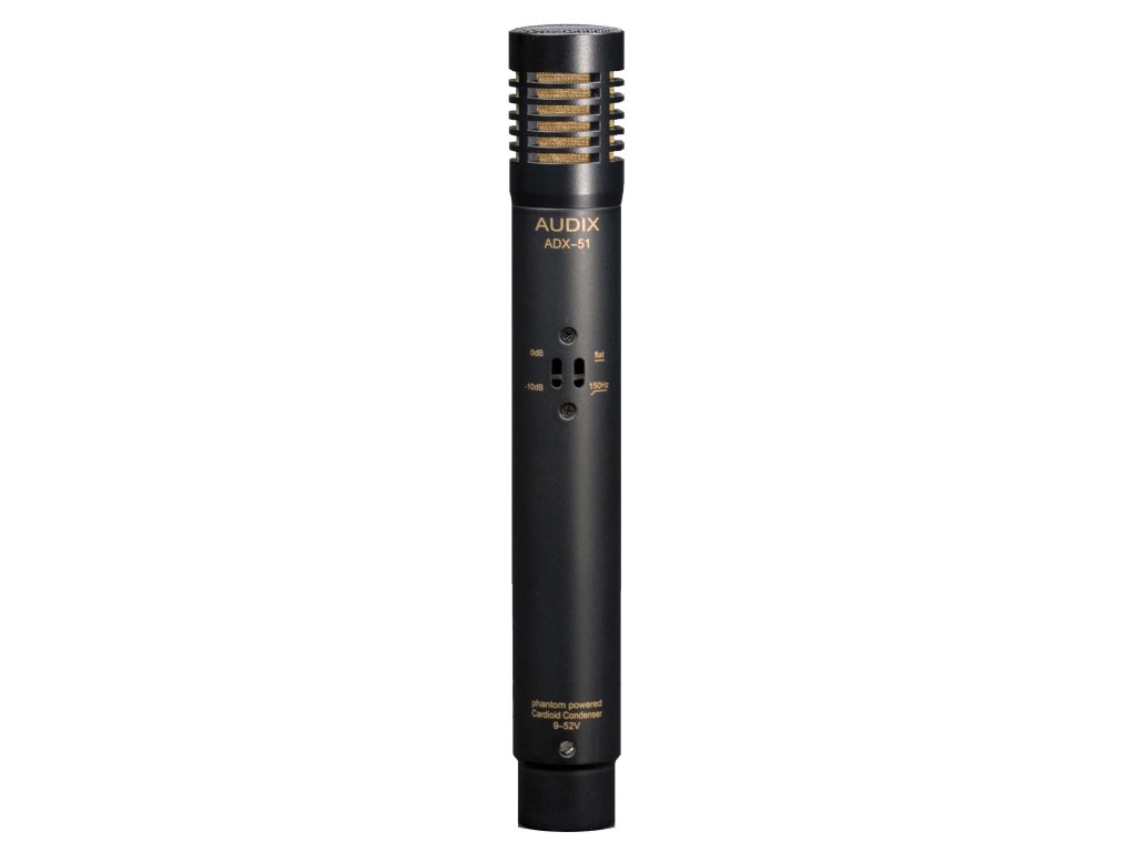 Audix ADX51 to mikrofon pojemnościowy, idealny do overheadów, talerzy, hi-hatu i instrumentów akustycznych. Został zaprojektowany tak, aby był w stanie przetwarzać szeroką gamę dźwięków zarówno podczas występów na żywo, jak i w studiach nagraniowych, radiowych i telewizyjnych. Ten mikrofon ma kardioidalną charakterystykę kierunkową i delikatną, zrównoważoną charakterystykę częstotliwościową w zakresie 40 Hz – 20 kHz. Mikrofon jest wyposażony w nisko szumową elektronikę, symetryczne wyjście, przełączniki tłumienia (PAD – 10 dB) i filtr częstotliwości (poniżej 150 Hz). Ogólnie wytrzymała konstrukcja i zdolność do pracy z ciśnieniem akustycznym do 142 dB czynią go idealnym pomocnikiem do wymagających zastosowań. W zestawie znajduje się uchwyt mikrofonowy DCLIP.