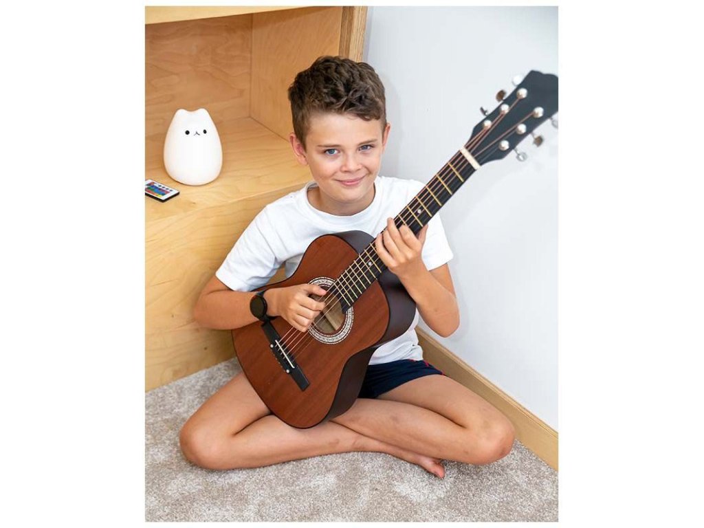 NN AG 34 to 18-progowa gitara akustyczna 1/2 przeznaczona przede wszystkim dla osób, które chcą rozpocząć swoją przygodę z tym instrumentem. NN AG 34 to nieco mniejsza wersja pełnowymiarowej gitary, która idealnie nadaje się dla dzieci w wieku około 7 do 10 lat. Dzięki krótszej szyjce i mniejszemu korpusowi gra na niej jest dla dzieci wygodniejsza niż na gitarze w pełnym rozmiarze. Z powodzeniem z instrumentu mogą korzystać również nastolatki i dorośli. Niektórzy celowo wybierają modele typu 1/2, ponieważ są to gitary, które można zabrać ze sobą w każdą podróż, na ognisko lub domowe spotkanie z przyjaciółmi!