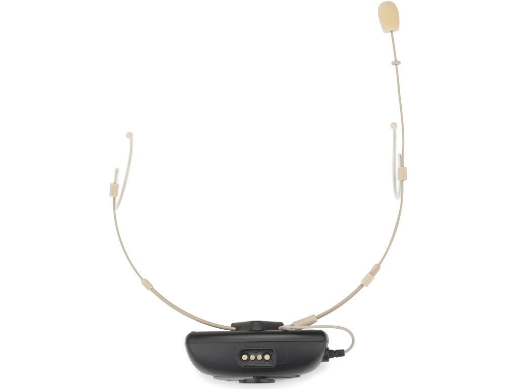 Unikalny system bezprzewodowy do śpiewania z mikrofonem nagłownym i miniaturowym nadajnikiem umieszczonym bezpośrednio na pałąku nagłownym.