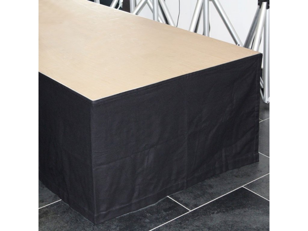 Nieprzewiewna czarna tkanina zaciemniająca impregnowana środkiem zmniejszającym palność (B1 zgodnie z DIN 4102) o gramaturze 300 g. Tkaniny posiadają samoprzylepny pasek z haczykiem i pętelką, dzięki któremu można je łatwo przymocować do podestów itp. i w każdej chwili odpiąć.
