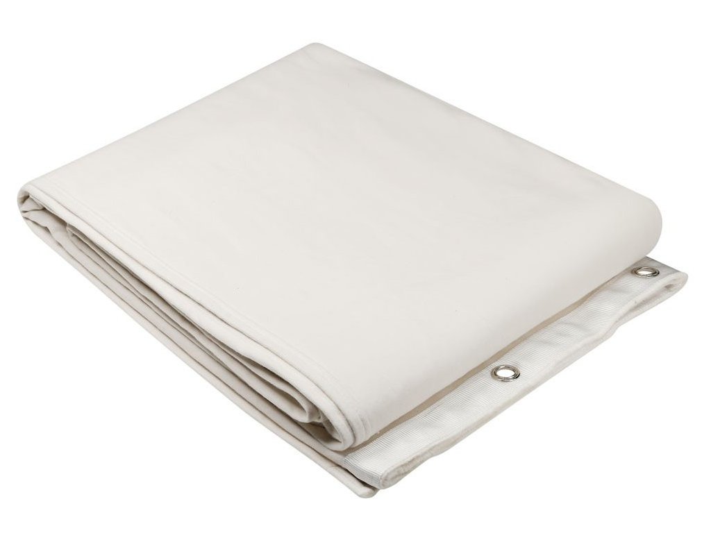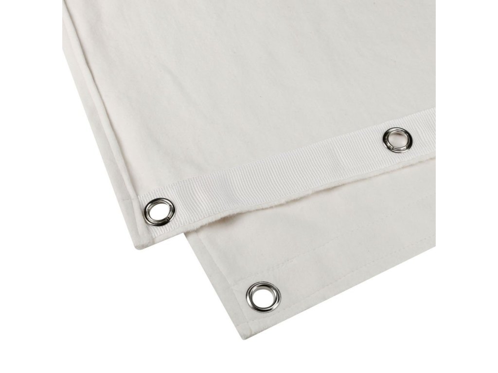 - Dodatkowe właściwości: Odporność na płomienie (B1), jedna strona obszyta taśmą i przelotkami