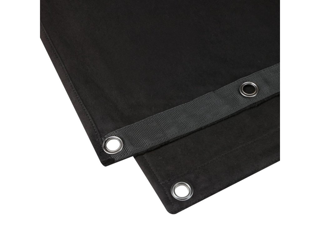- Dodatkowe właściwości: Odporność na płomienie (B1), jedna strona obszyta taśmą i przelotkami