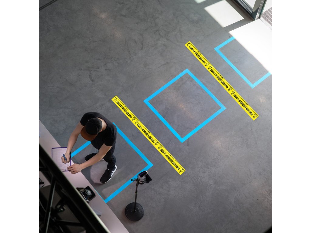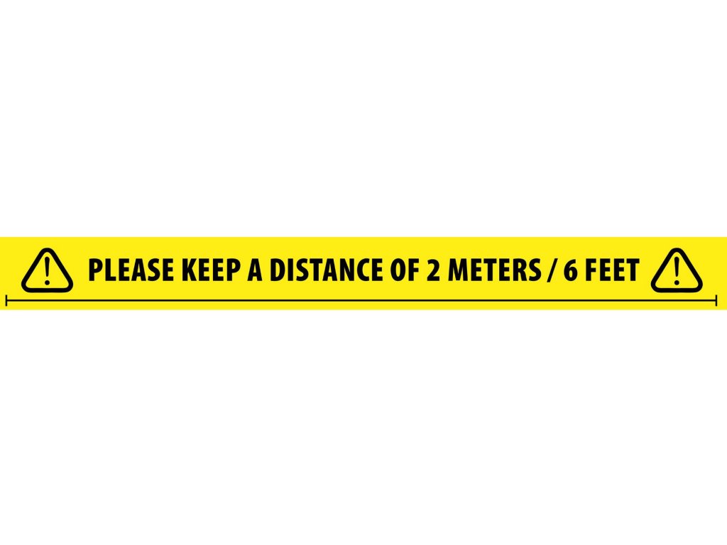 Taśma ostrzegawcza Adam Hall to dystansowa taśma samoprzylepna z PVC, która idealnie nadaje się do tymczasowego oznaczania w poczekalniach, aby zapewnić, że klienci lub goście zachowują zalecany dystans społeczny 2 m / 6 stóp. Aby zmniejszyć ryzyko zarażenia wirusem.