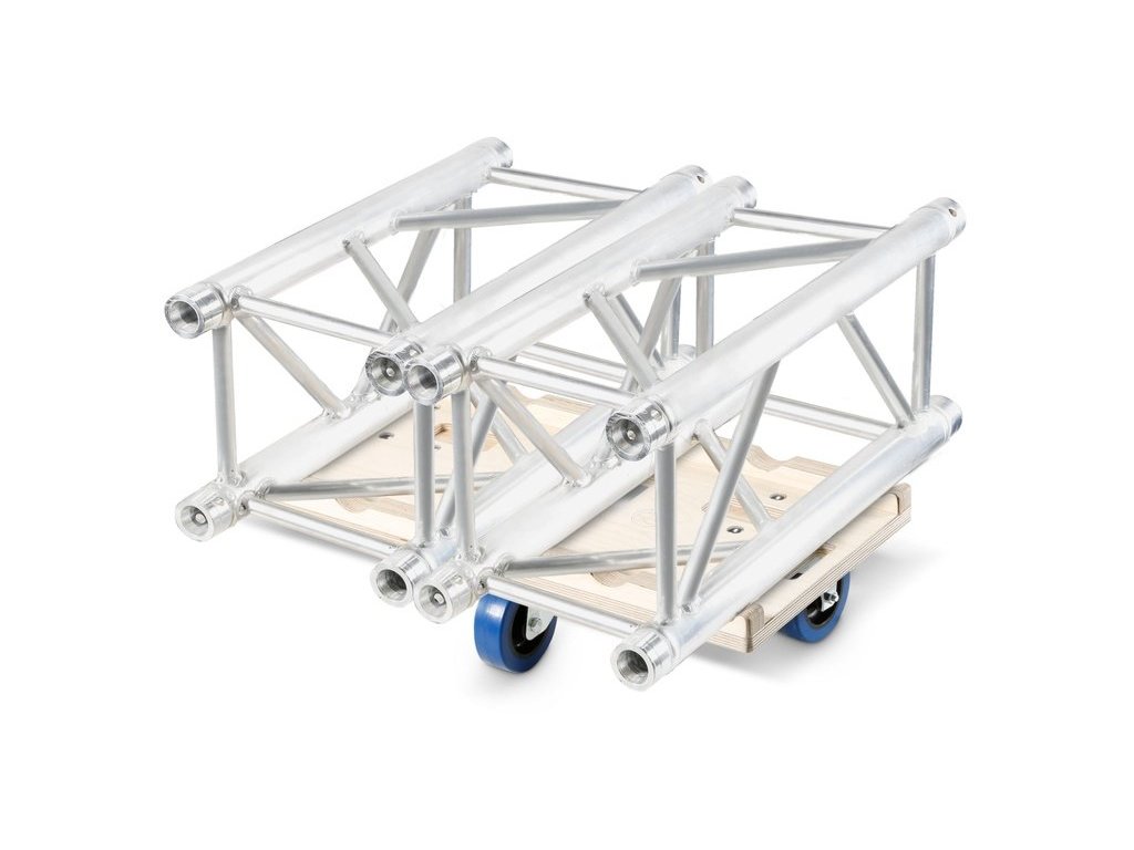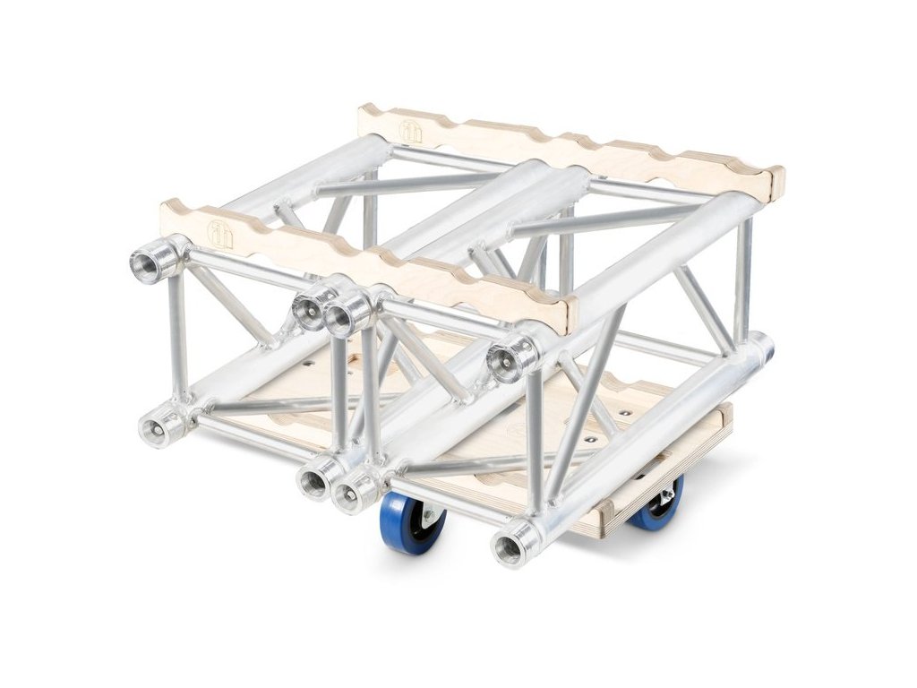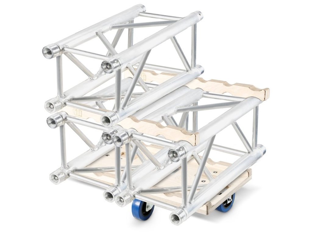 System składowania kratownic na kółkach w połączeniu z 382100 umożliwia łatwe i bezproblemowe składowanie kratownic do bezpiecznego transportu. Płyty rolkowe ze sklejki brzozowej są dostępne w wersjach z 2 x 2,3, 3 i 4 kółkami i są odpowiednie do kratownic 3 i 4-punktowych.