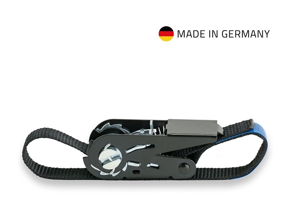 Pasy składają się z pasów poliestrowych o wysokiej wytrzymałości na rozciąganie (PES) ze średnim naprężeniem zaledwie 4% w połączeniu z wysokiej jakości napinaczem dociskowym. Są one wyposażone w obowiązkową niebieską etykietę z zaznaczoną długością i dopuszczalną siłą ciągnącą. Są produkowane zgodnie z normą DIN60060/ VDI 2701 i są kontrolowane przez urząd badawczy i certyfikacyjny (Techniczną Komisję Ekspertów) pod kątem eksploatacji, jakości i bezpieczeństwa.