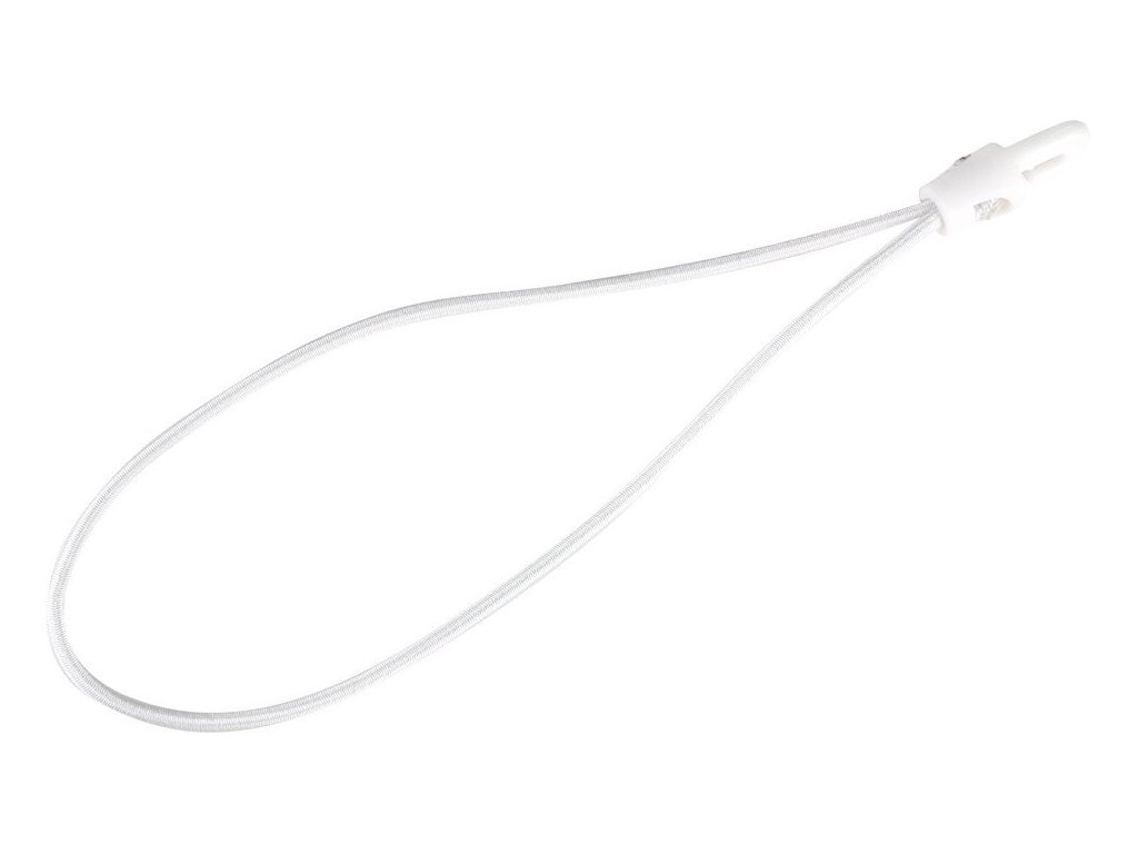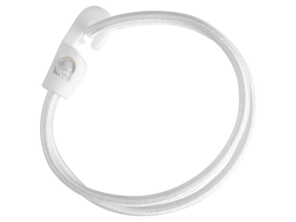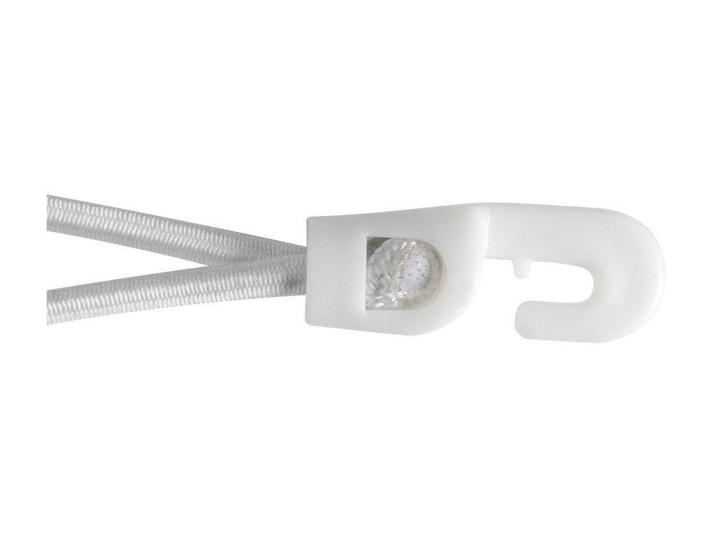 Linka bungee Spannfix z plastikowym haczykiem w kolorze białym.