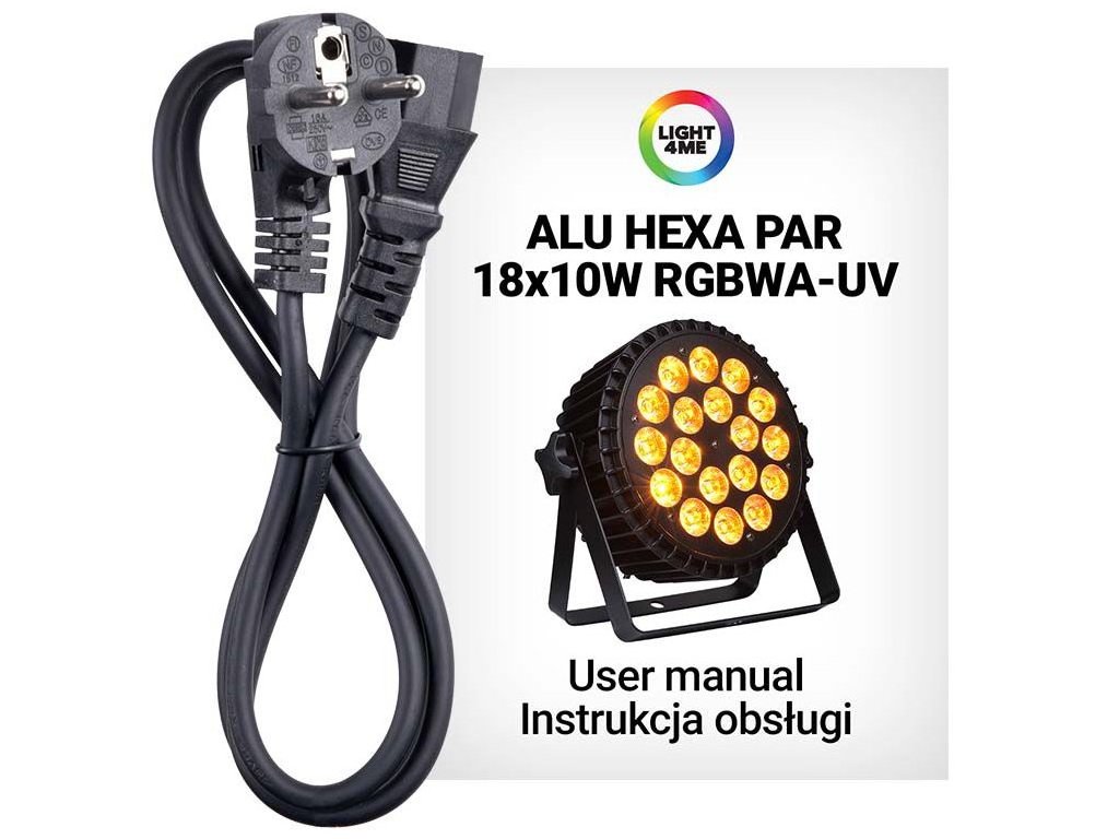 - Źródło światła: 18x6W RGBW LED (4w1)