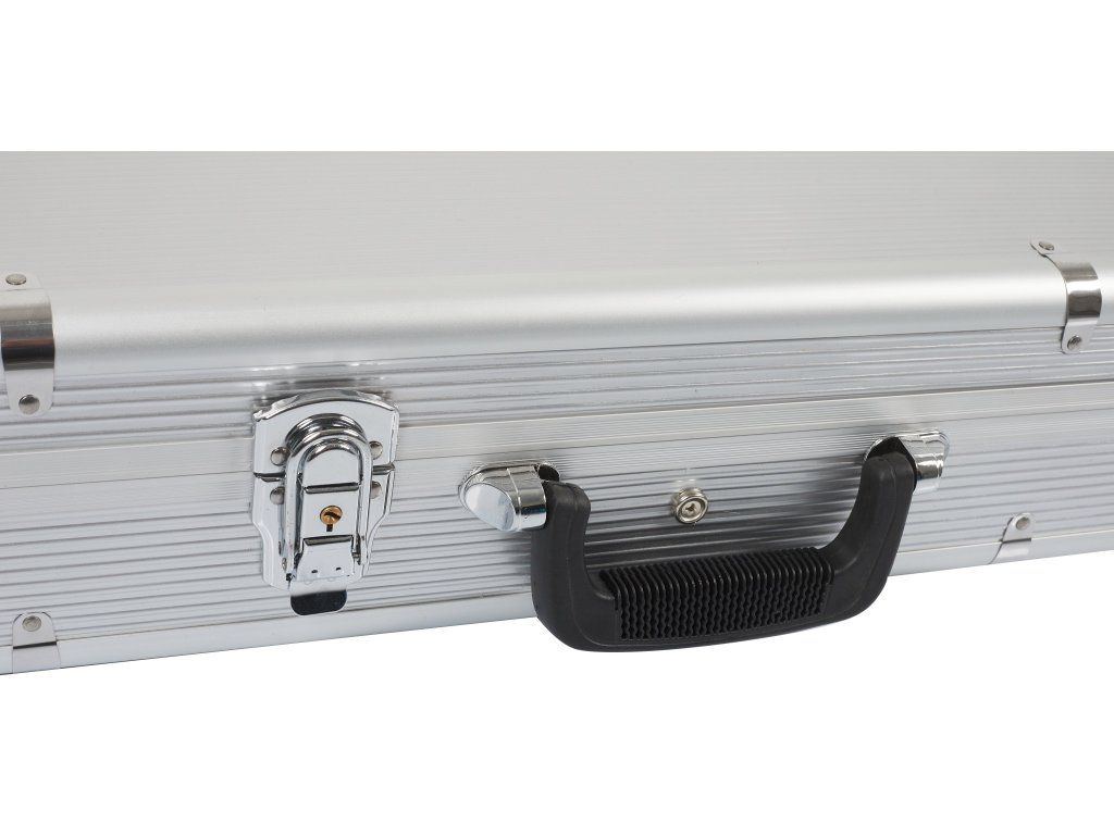 Wnętrze kufra wyściełane jest czarnym pluszem z kieszenią na akcesoria, kostki lub pasek. Jeśli chcesz zapewnić swojemu instrumentowi najlepszą ochronę, RaZZor Case to najlepszy wybór. Odpowiedni do gitar typu stratocaster, telecaster i superstrat. Wnętrze wyściełane czarnym pluszem. Chromowane zamki. Materiały: EPS, aluminium.