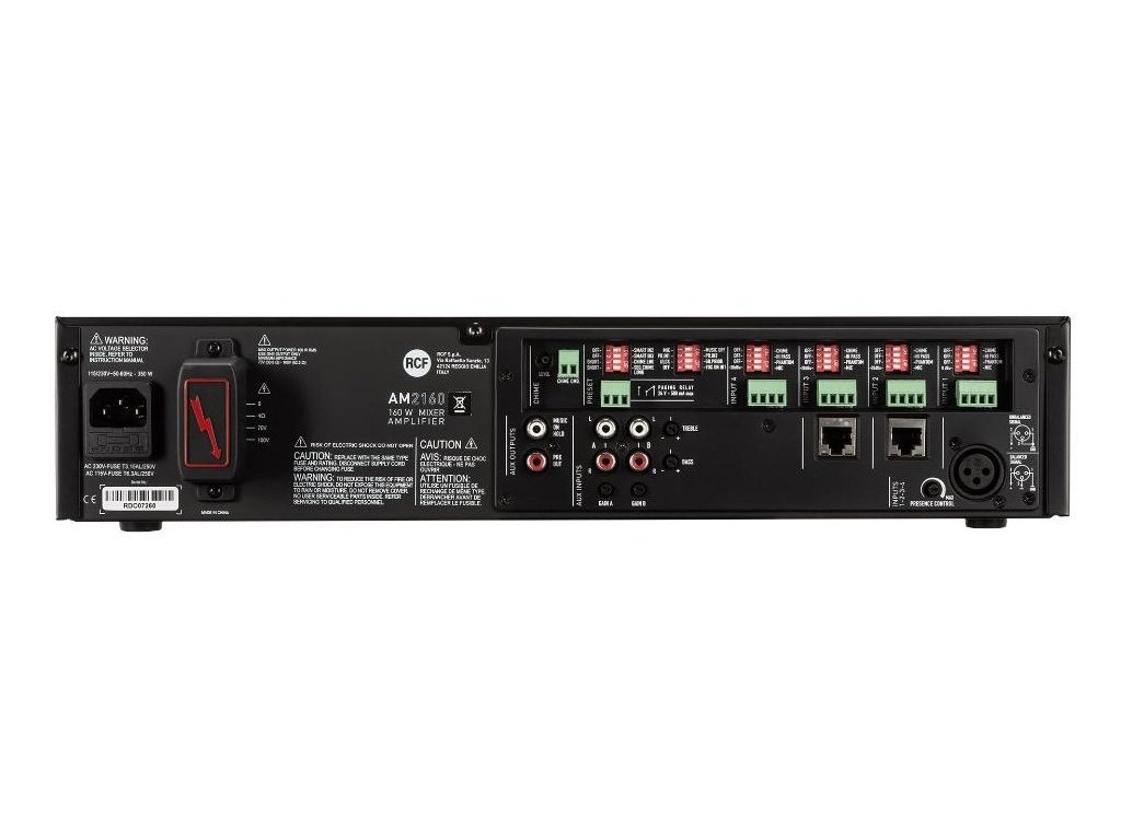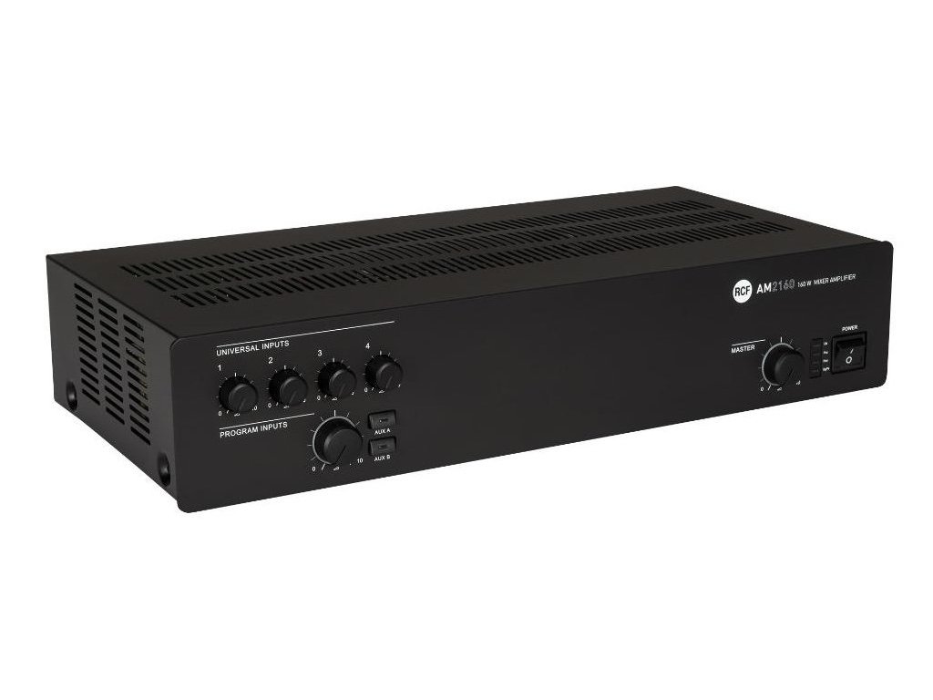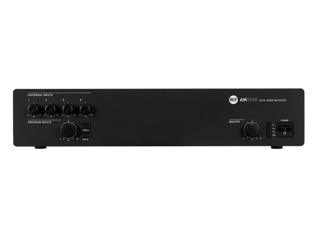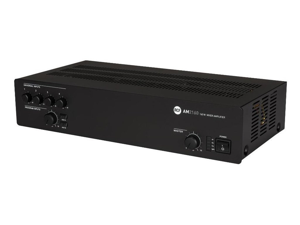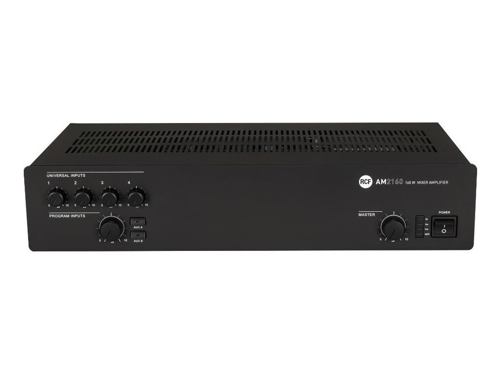 AM 2160 to wzmacniacz miksujący z 4 mikrofonowymi wejściami liniowymi audio na odłączanych złączach (pierwsze wejście ma również gniazdo XLR) i 2 wejściami aux dla źródeł muzyki (np. odtwarzacze CD, tunery itp.). Znamionowa moc wyjściowa 160 W jest dostępna dla głośników o niskiej impedancji lub dla linii o stałym napięciu 100 - 70 V.