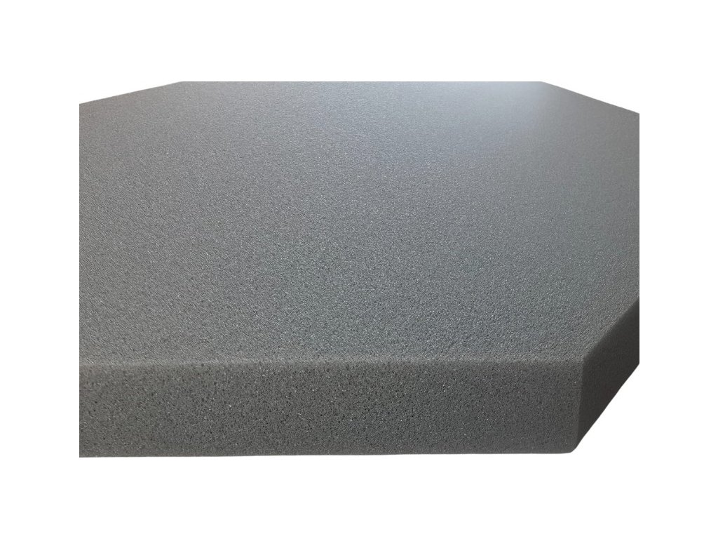 - Wymiary panelu akustycznego: dłuższa przekątna: 50 cm, krótsza przekątna: 43,5 cm, bok: 25 cm, grubość: 3 cm