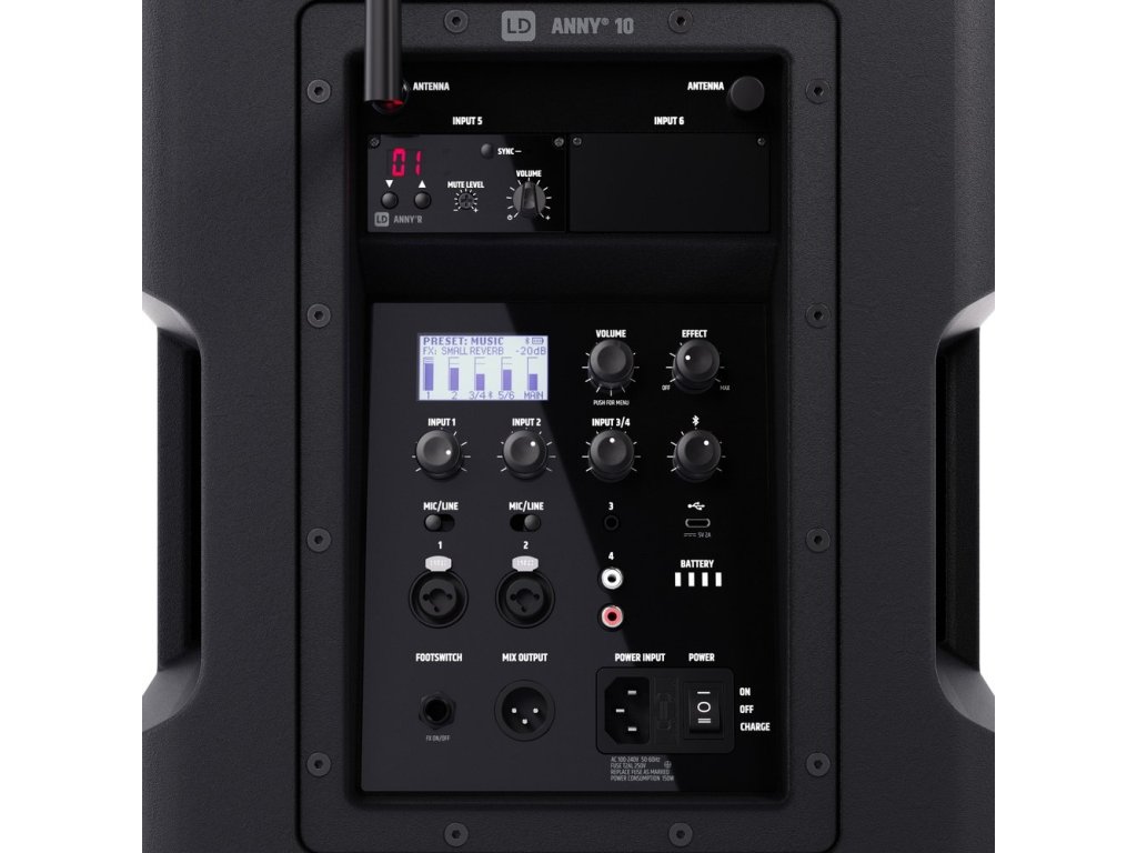 ANNY 10 jest wyposażony w 10" woofer, 1" tweeter, kółka i teleskopowy uchwyt, oferując idealne połączenie przenośności i wydajności dźwięku. Dzięki zintegrowanemu 6-kanałowemu mikserowi, 3-pasmowemu equalizerowi, 5 ustawieniom aplikacji (MUSIC, LIVE, VOCAL, ECO, FLAT) i efektom, takim jak reverb i delay, łączy w sobie kompleksowe funkcje i doskonałą jakość dźwięku w kompaktowej i solidnej obudowie. ANNY 10 zachwyca wszechstronnymi opcjami podłączeń: dwa kombinowane wejścia mikrofonowe/liniowe, jeden kanał stereo z gniazdem 3,5 mm (AUX) i wejściami RCA, a także Bluetooth 5.0 z kodekiem AAC. Ta gama wejść pozwala na szeroki zakres ustawień z połączeniem mowy i muzyki. Wejście przełącznika nożnego umożliwia łatwe i bez użycia rąk przełączanie efektów reverb & delay za pomocą zewnętrznego przełącznika nożnego podczas grania lub śpiewania.