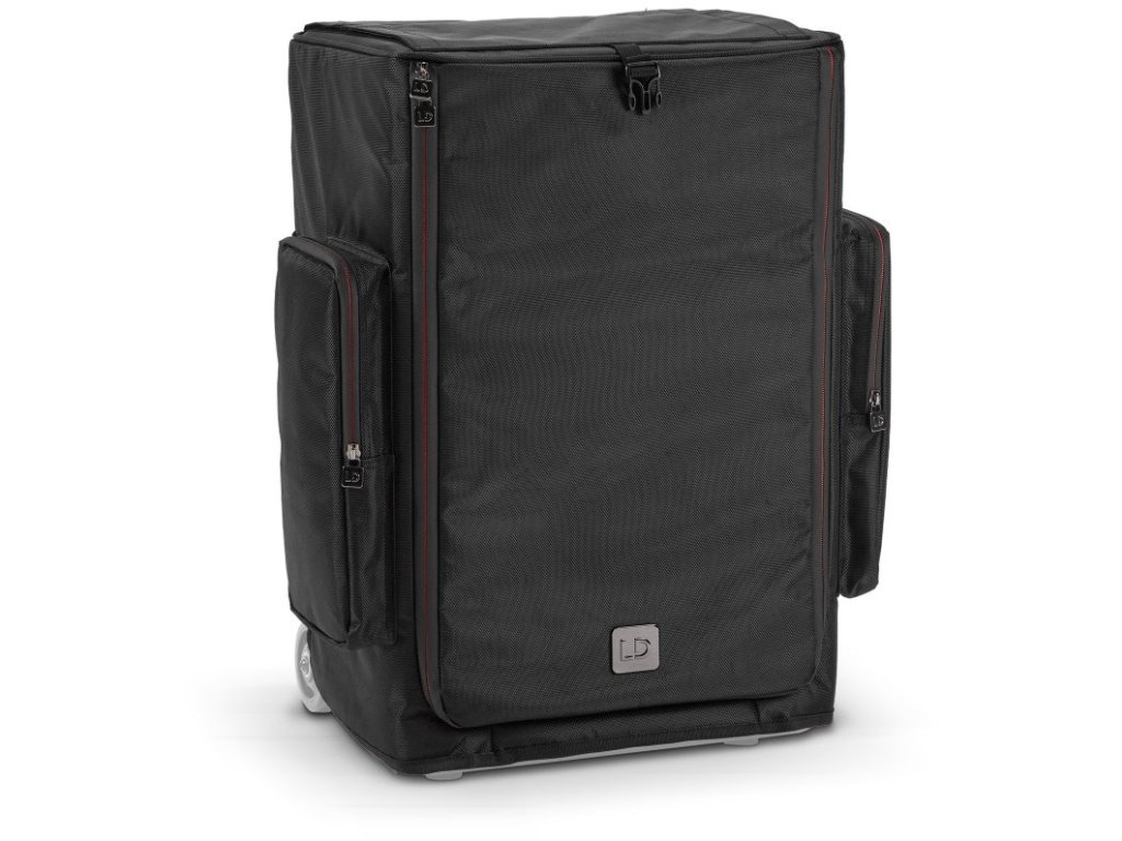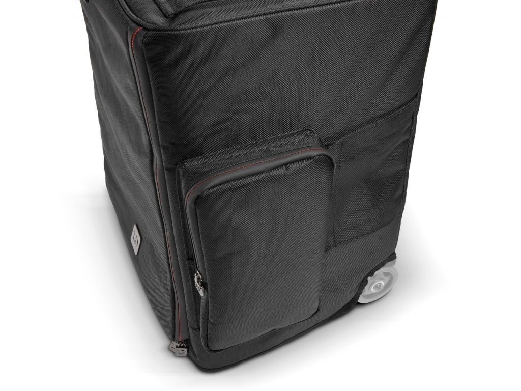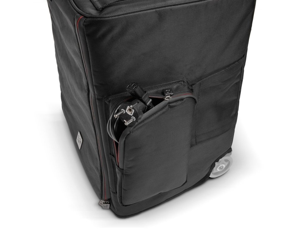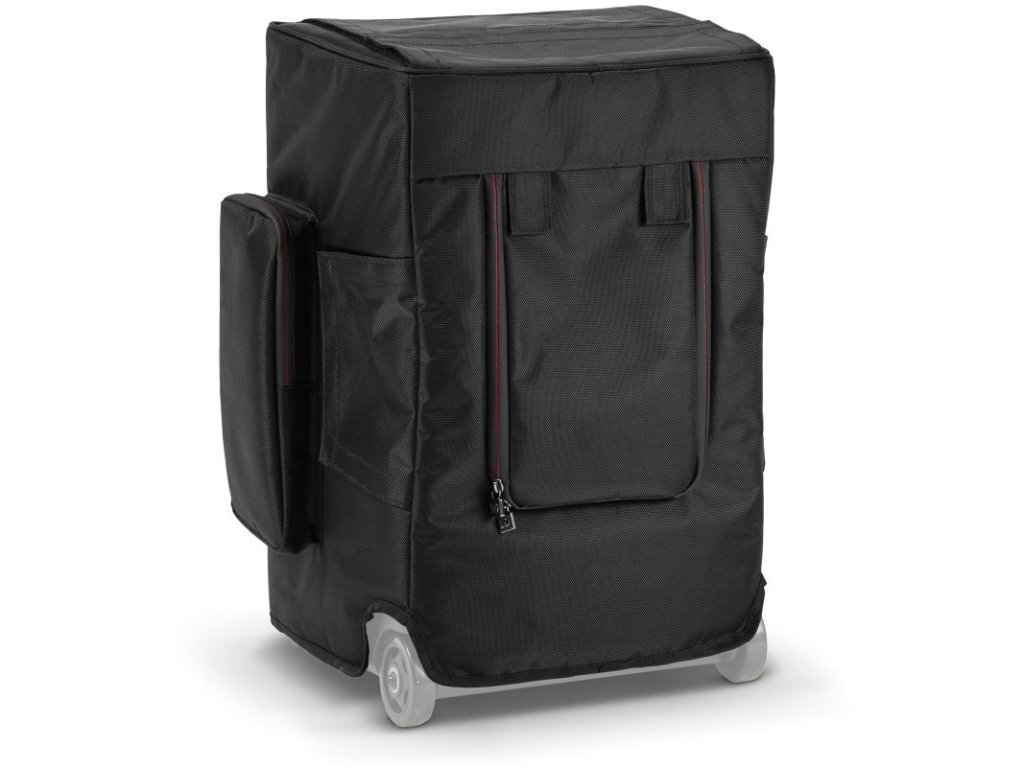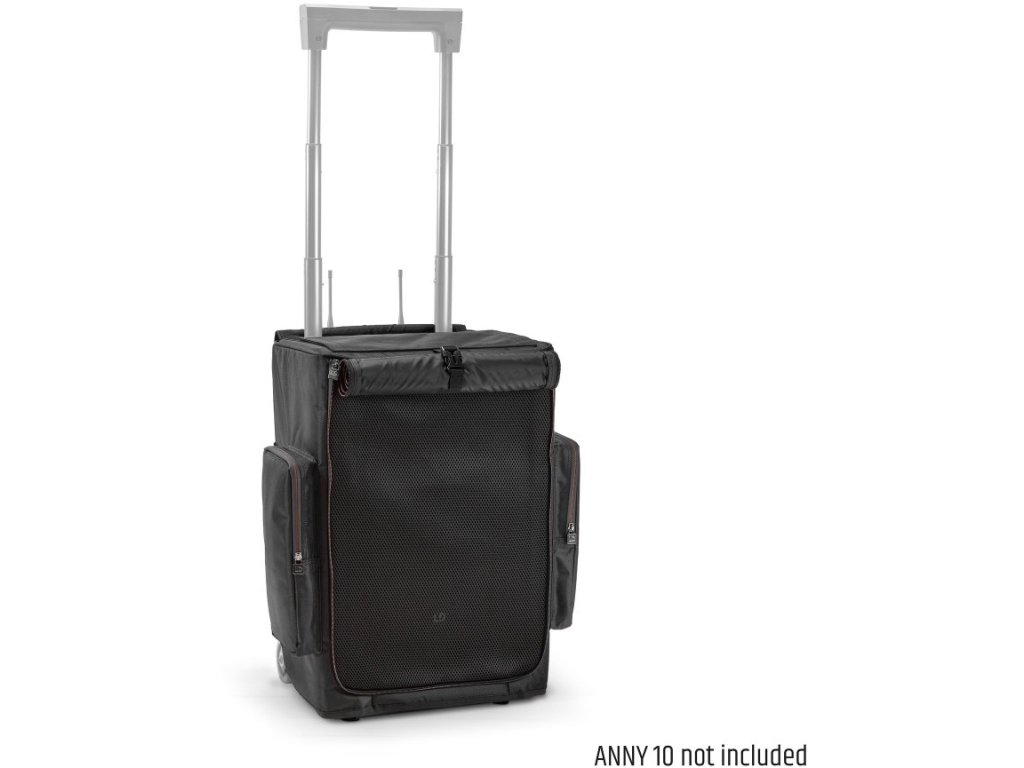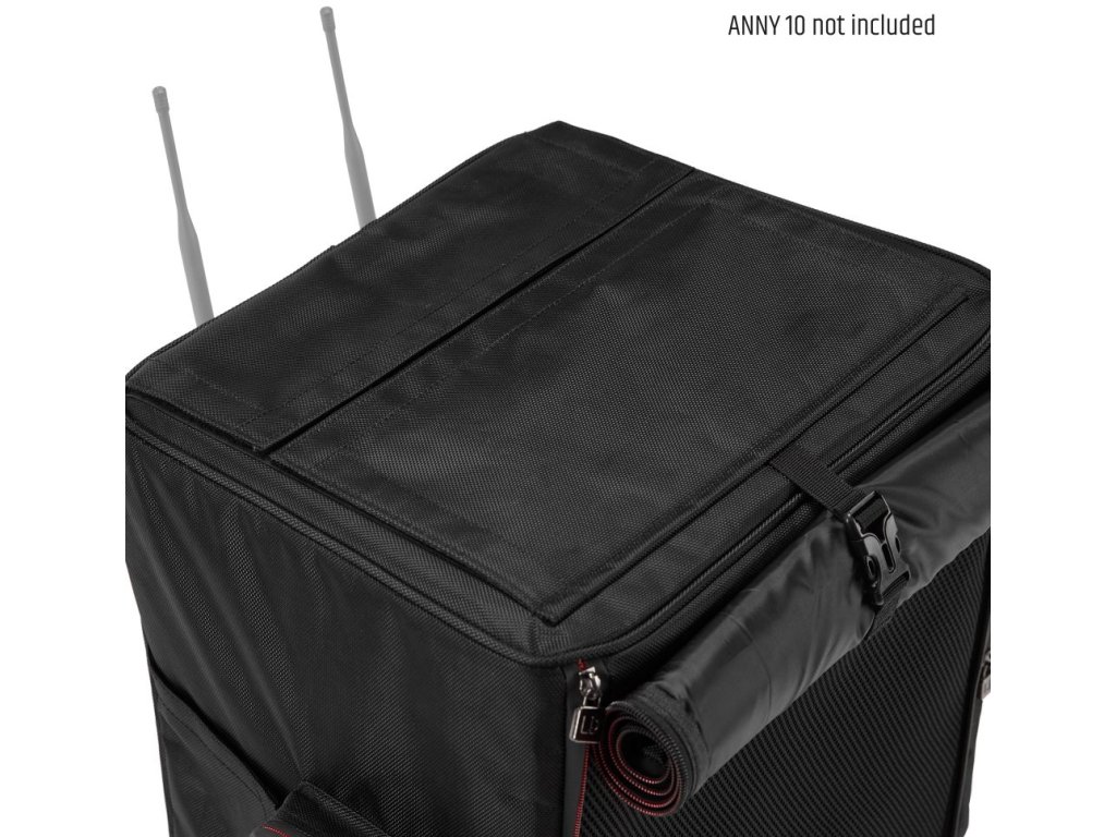 Kilka otworów na rzepy i zamek błyskawiczny oraz duża, zwijana część przednia umożliwiają pełne wykorzystanie głośnika ANNY 10 z założonym pokrowcem ochronnym. 2 zewnętrzne kieszenie po bokach pokrowca ochronnego oferują wystarczająco dużo miejsca do przechowywania akcesoriów, takich jak kable zasilające i kable XLR.