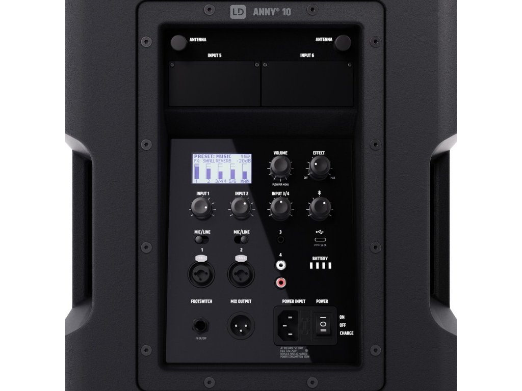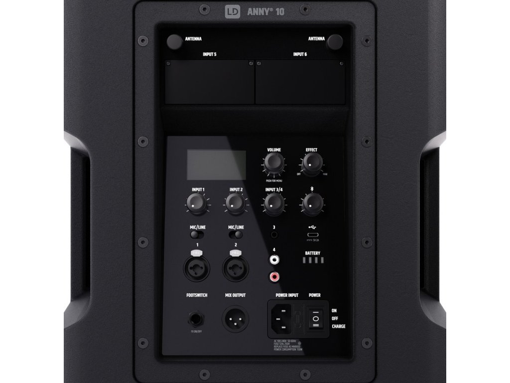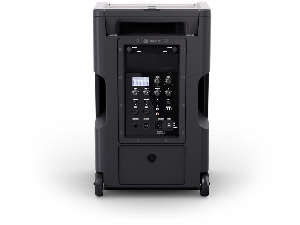 ANNY 10 jest wyposażony w 10" woofer, 1" tweeter, kółka i teleskopowy uchwyt, oferując idealne połączenie przenośności i wydajności dźwięku. Dzięki zintegrowanemu 6-kanałowemu mikserowi, 3-pasmowemu equalizerowi, 5 ustawieniom aplikacji (MUSIC, LIVE, VOCAL, ECO, FLAT) i efektom, takim jak reverb i delay, łączy w sobie kompleksowe funkcje i doskonałą jakość dźwięku w kompaktowej i solidnej obudowie. ANNY 10 zachwyca wszechstronnymi opcjami podłączeń: dwa kombinowane wejścia mikrofonowe/liniowe, jeden kanał stereo z gniazdem 3,5 mm (AUX) i wejściami RCA, a także Bluetooth 5.0 z kodekiem AAC. Ta gama wejść pozwala na szeroki zakres ustawień z połączeniem mowy i muzyki. Wejście przełącznika nożnego umożliwia łatwe i bez użycia rąk przełączanie efektów reverb & delay za pomocą zewnętrznego przełącznika nożnego podczas grania lub śpiewania.