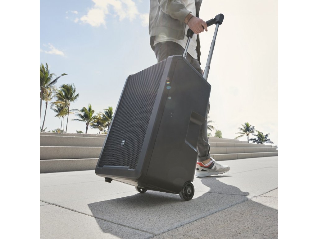 Jeśli często podróżujesz z głośnikiem ANNY 10, z pewnością docenisz zintegrowane kółka i teleskopowy uchwyt, który pozwala ciągnąć głośnik jak wózek. Dzięki solidnej obudowie i dwóm uchwytom głośnik ANNY 10 jest wyjątkowo wytrzymały i nadaje się do użytku zarówno na podłodze, jak i na statywie. Jako akcesorium dostępna jest idealnie dopasowana, wodoodporna torba transportowa z dodatkową przestrzenią do przechowywania, która zapewnia ochronę przed warunkami atmosferycznymi i służy jako praktyczne rozwiązanie do przechowywania. Więc śmiało, stwórz niezapomniane chwile.